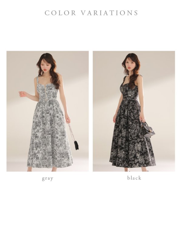 Lサイズあり【DEA./ディア】ジャガード/ バストジップ/ フレア/ ミディアムドレス/ キャバドレス long[OF08] [DE4225-GY-2508]