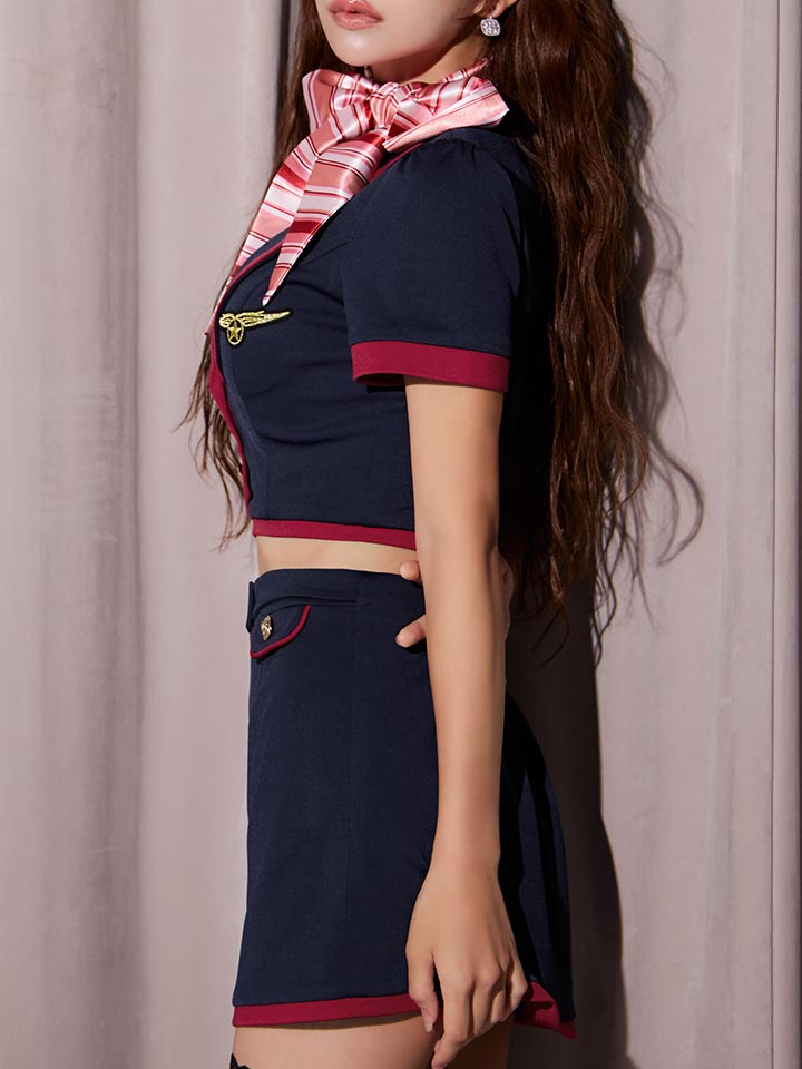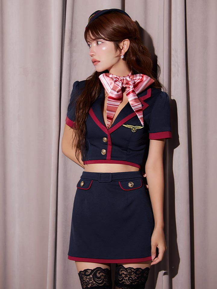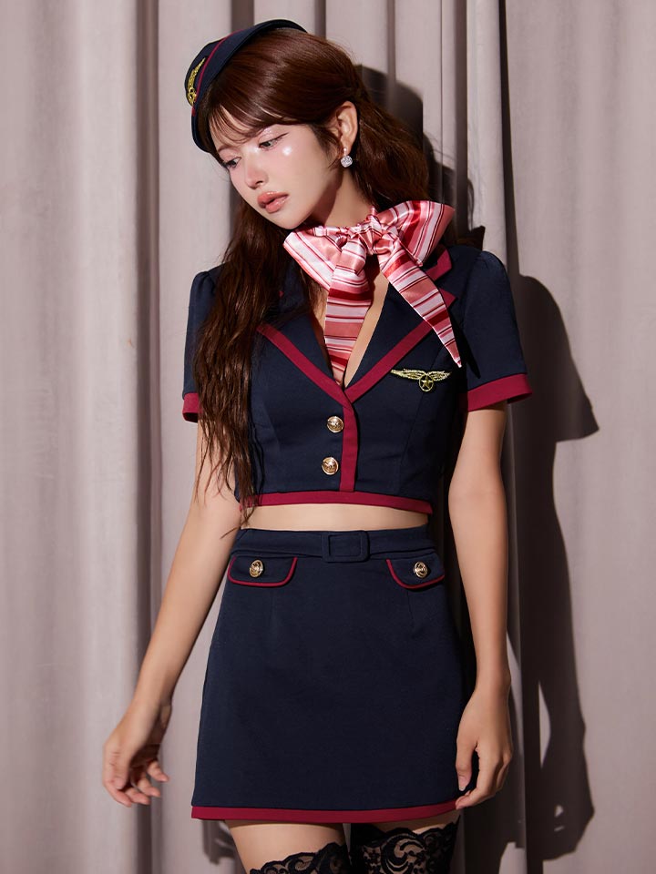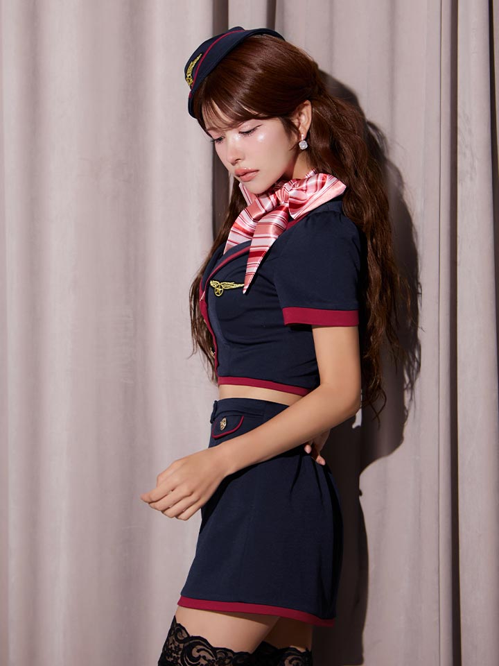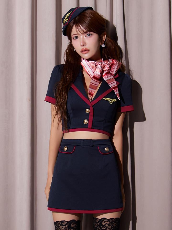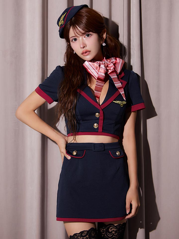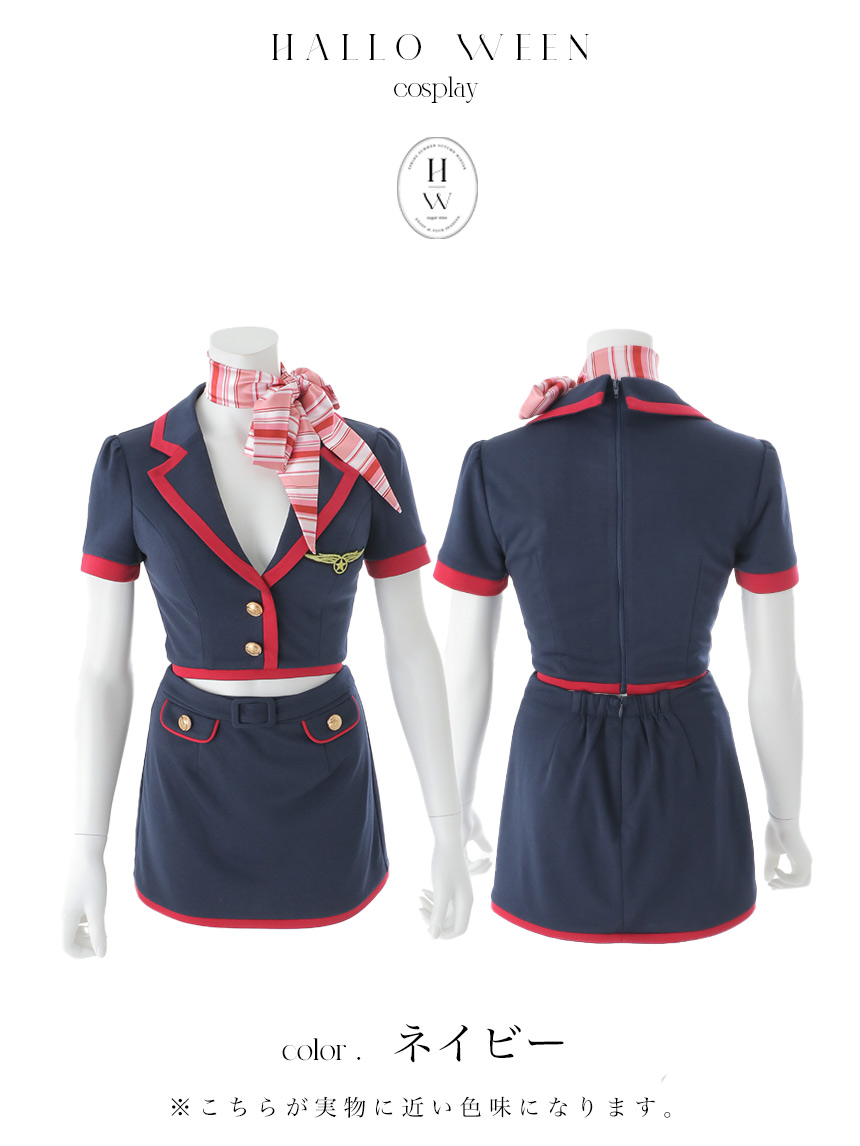 【即日発送】【ハロウィン】CAタイトミニセットアップ【コスプレ6点セット】【XS-Mサイズ/1カラー】[OF01] [HW-221-SB-dzk-NV-25RI]