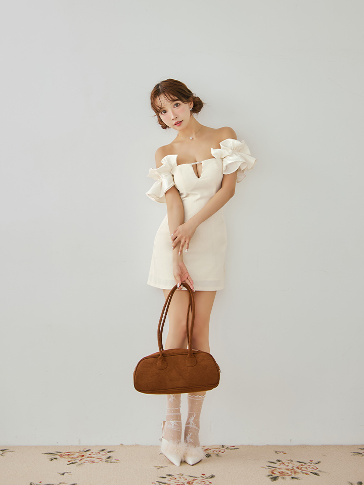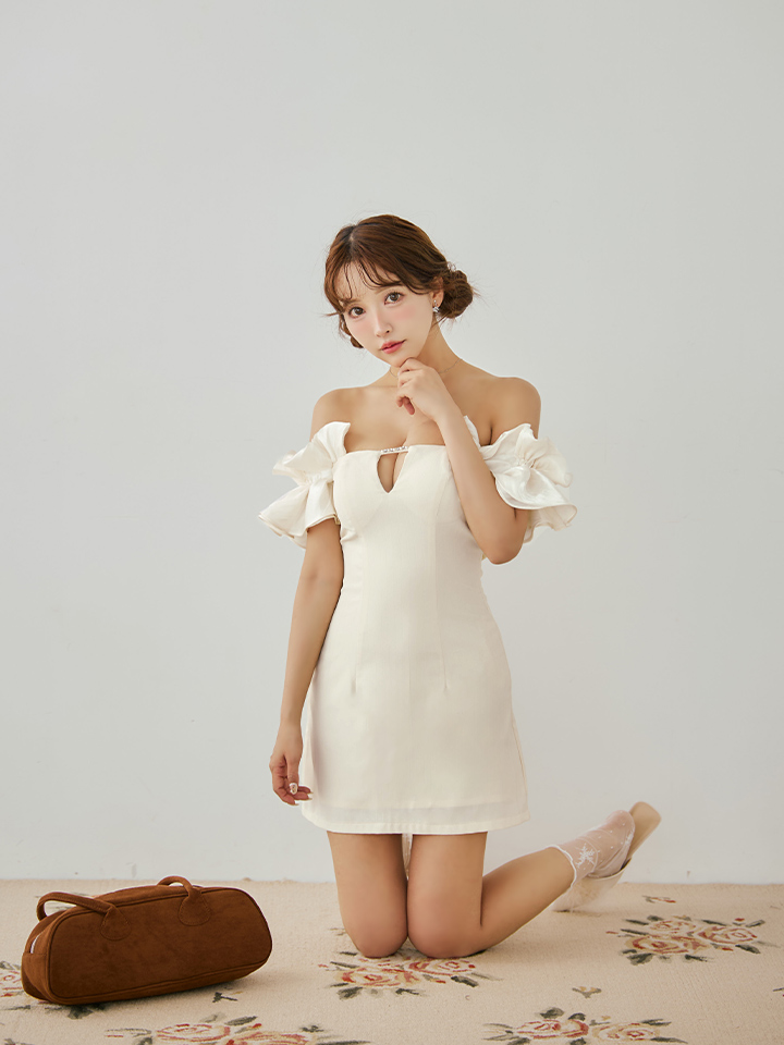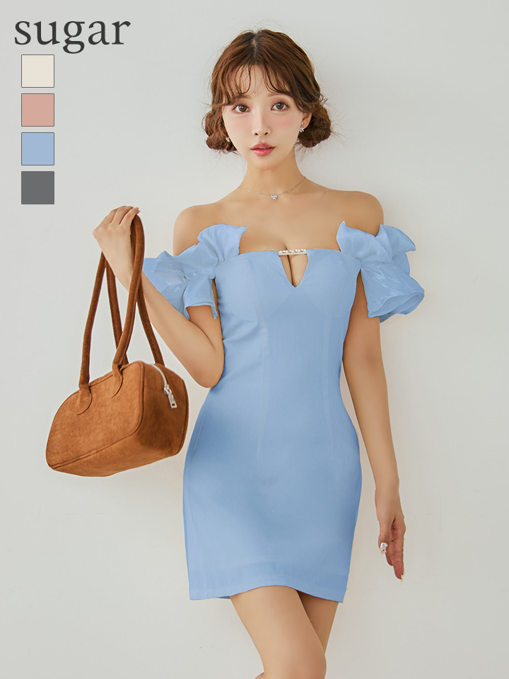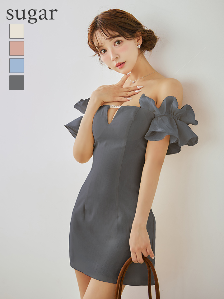 - > 【ANGEL R/エンジェルアール】オフショルダー/ フリルスリーブ/ バストチャーム/ ビジュー/ Aライン/ フレア/ マイクロミニドレス/ キャバドレス[OF2]