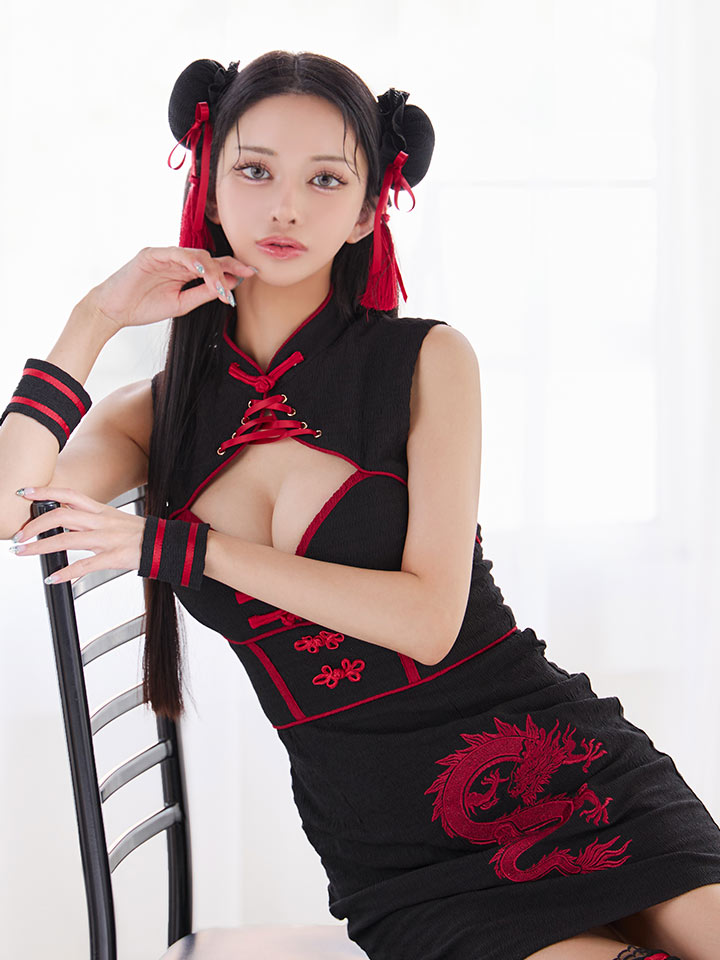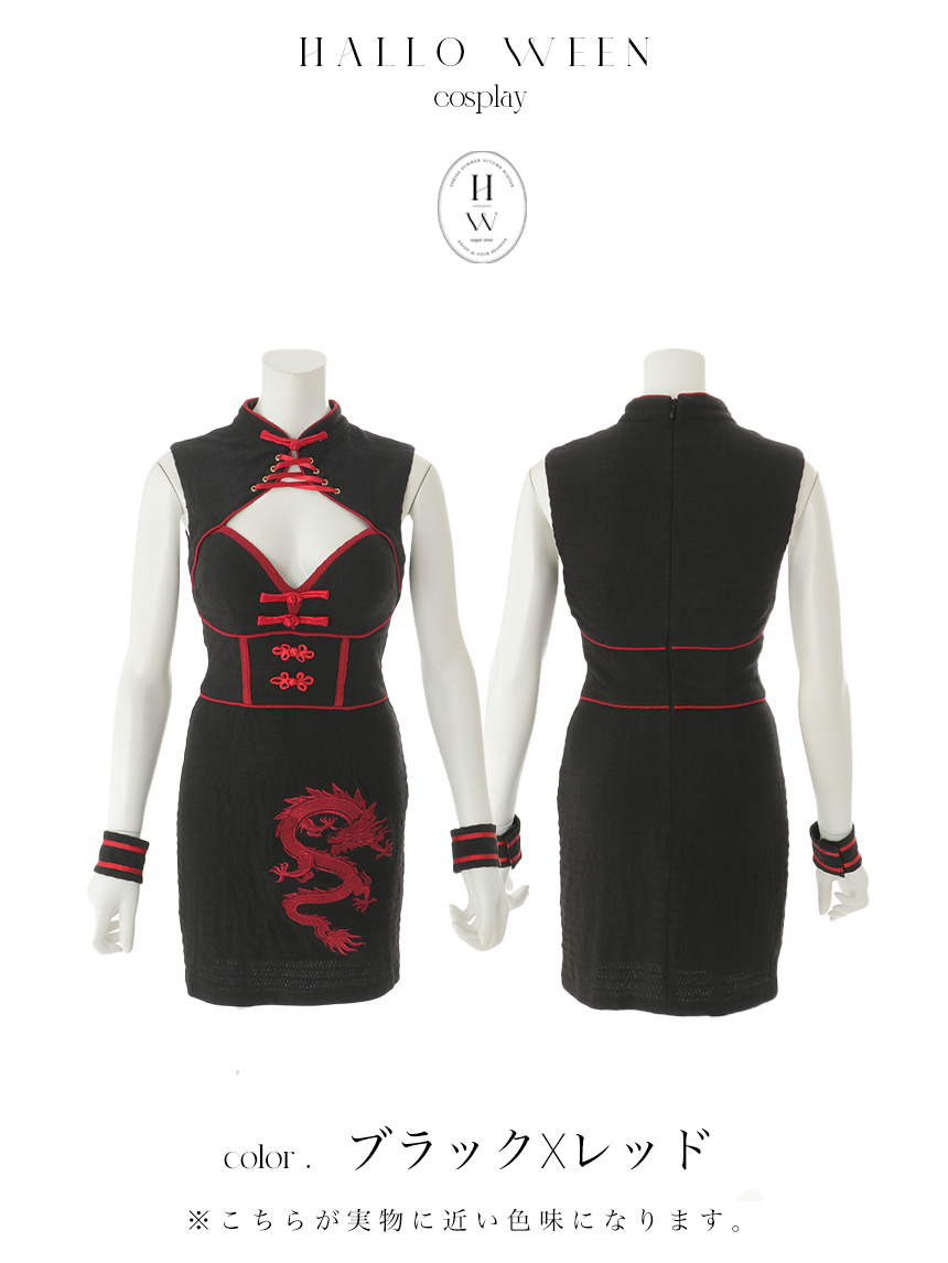 【即日発送】【ハロウィン】シャーリングドラゴン刺繍タイトチャイナ【コスプレ4点セット】【XS-Lサイズ/1カラー】[OF04] [HW-219-YN-dzw-BxR-25MA]