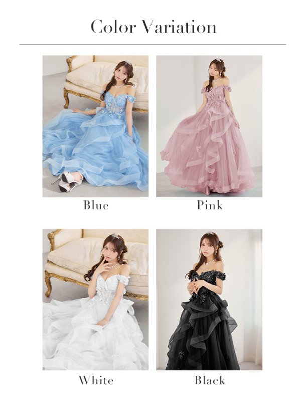 【JEAN MACLEAN/ジャンマクレーン】立体フラワー/ シアー/ オフショル/ フリル/ チュール/ フレア/ プリンセス/ ロングドレス/ キャバドレス long[OF2A]【一部予約商品/1月下旬発送予定】 [51907-JM-BL-S250830]