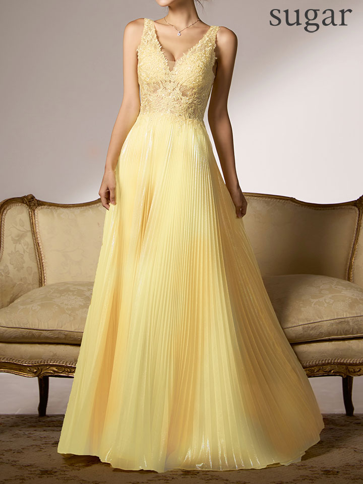 XS-Lサイズあり【SETTAN/セッタン】ラメ/ プリーツ/ ラインストーン/ 刺繍/ シアー/ ノースリーブ/ Aライン/ フレア/ ロングドレス / キャバドレス long[OF2]