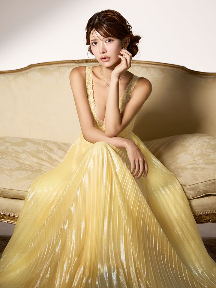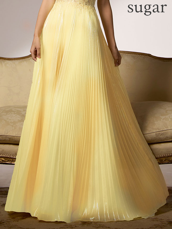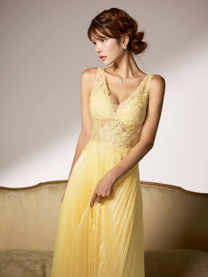 動く度に煌めくストーンと繊細なラメプリーツがラグジュアリーな雰囲気を演出◎