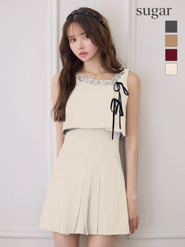 - > 【ANGEL R/エンジェルアール】ノースリーブ/ リボン/ ビジュー/ 2way/ フレア/ ミニドレス/ キャバドレス[OF2]