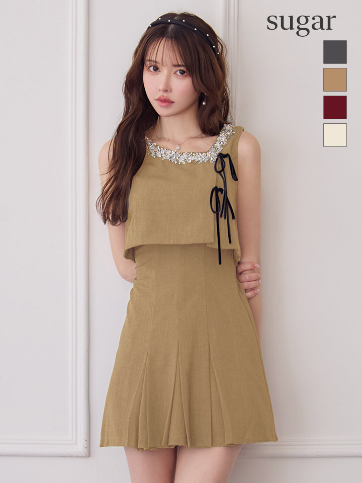 【ANGEL R/エンジェルアール】ノースリーブ/ リボン/ ビジュー/ 2way/ フレア/ ミニドレス/ キャバドレス[OF2] [AR25338-GY-S250902]