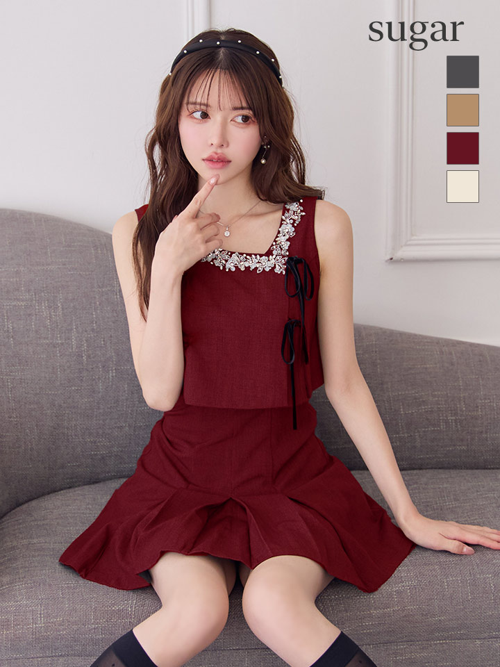 トップスは着脱可能で、シンプルにも華やかにも着こなせる2way仕様。