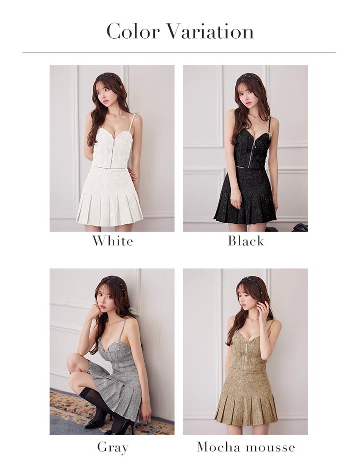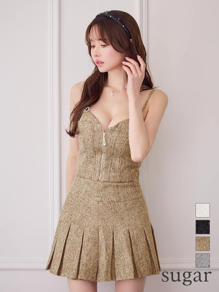 - > XSサイズあり【IRMA/イルマ】ミックスツイード/ フロントジップ/ リボンブローチ/ キャミソール/ プリーツ/ フレア/ セットアップ/ ミニドレス/ キャバドレス[OF2A]