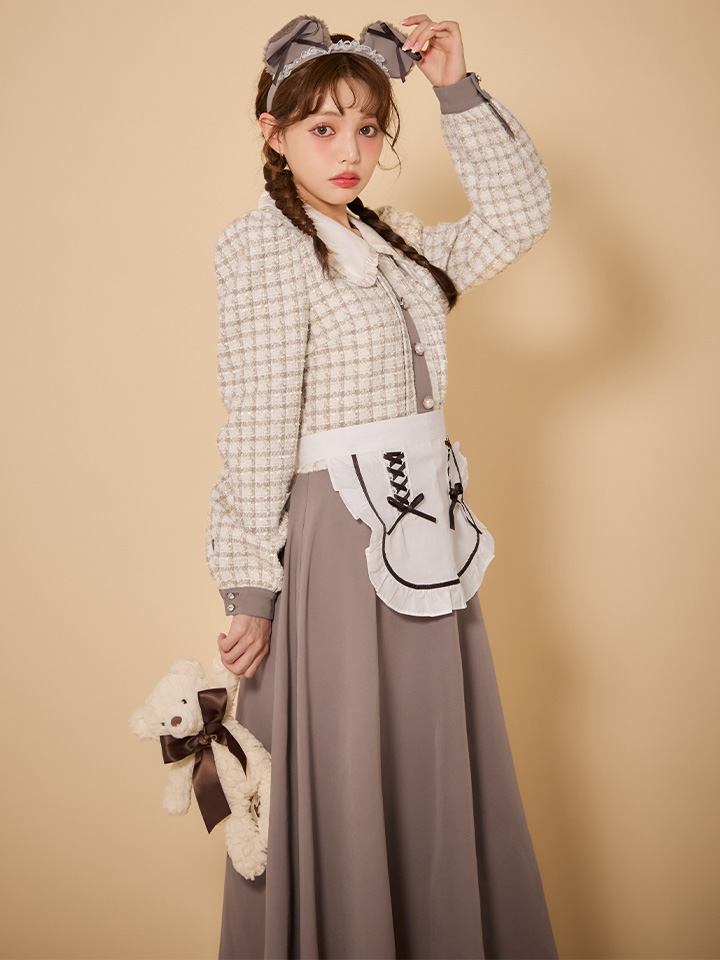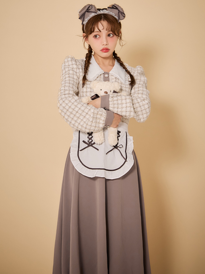 メイド めいど ワンピース かわいい 制服 コスプレ ミディアムスカート 長袖 ロングスリーブ 仕事服 ミディアム丈 ミモレ丈 露出が少ない ロングスカート くま ベア