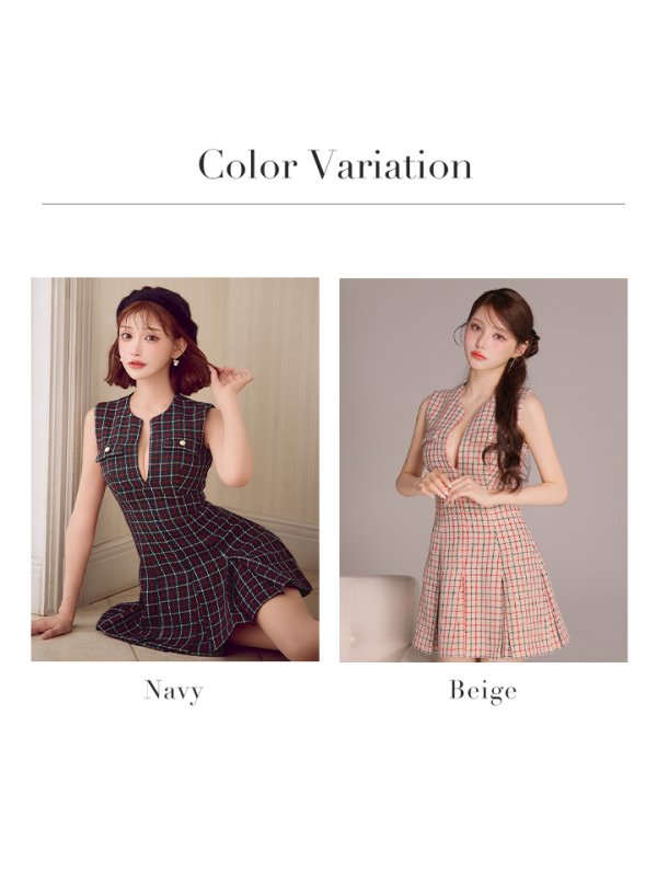 XSサイズあり【DEA./ディア】チェック/ ノースリーブ/ バストカット/ プリーツ/ ミニドレス/ キャバドレス[OF08]【一部予約商品/4月下旬発送予定】 [DE4209-NV-S250904]
