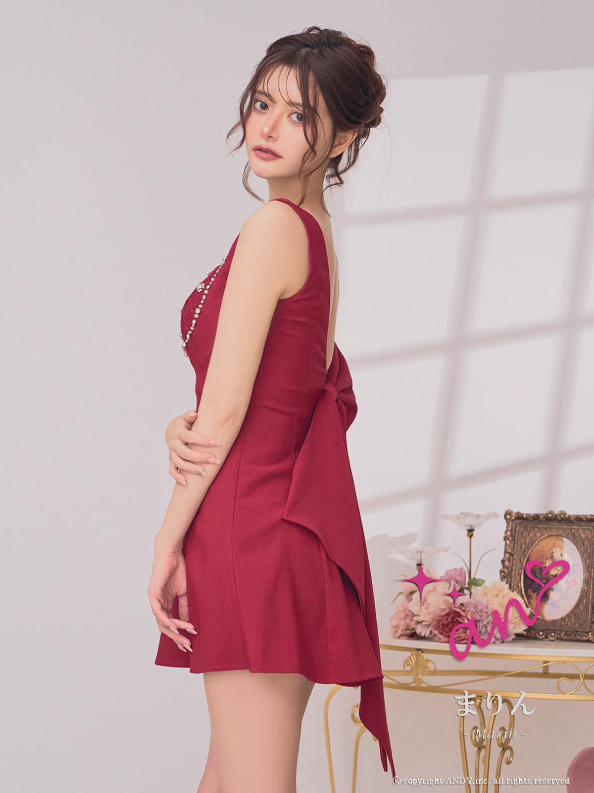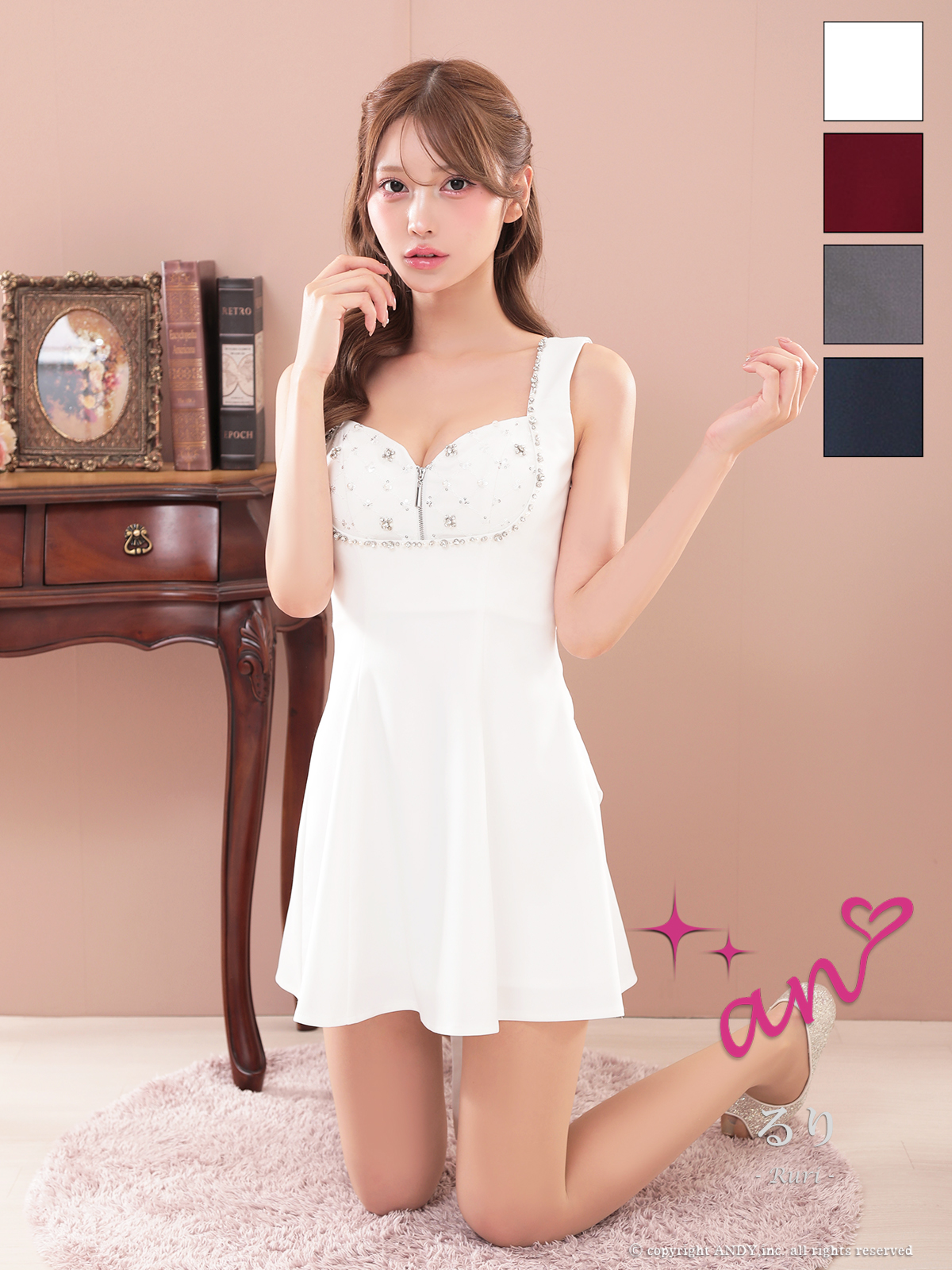 - > XSサイズあり【an /アン】ビジュー/ バストジップ/ ノースリーブ/ バックオープン/ リボン/ ミニドレス/ キャバドレス[OF05]