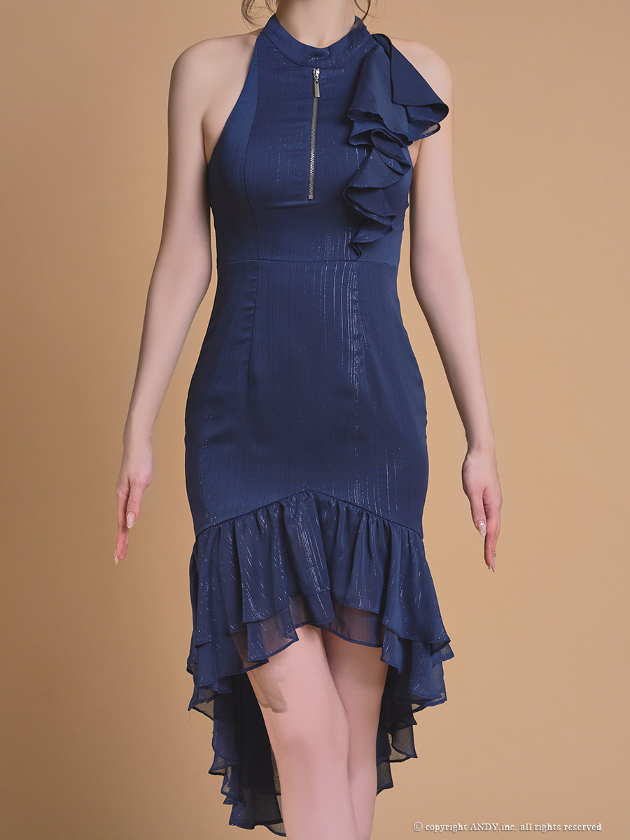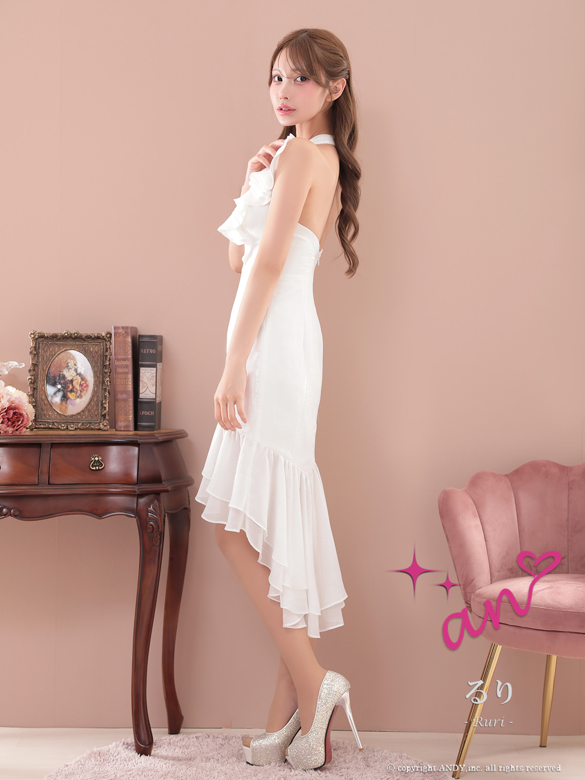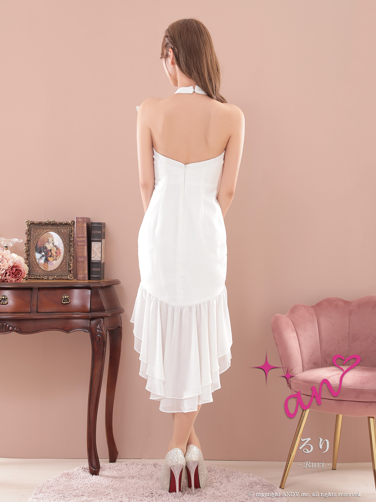 - > XSサイズあり【an /アン】ラメ/ ホルターネック/ バストジップ/ ショルダーフリル/ テールカット/ マーメイド/ ミディアムドレス/ キャバドレス[OF05]