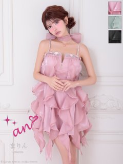 - > XSサイズあり【an/アン】ショルダーリボン/ バストジップ/ ノースリーブ/ フリル/ フレア/ ミディアムドレス/ キャバドレス[OF05]