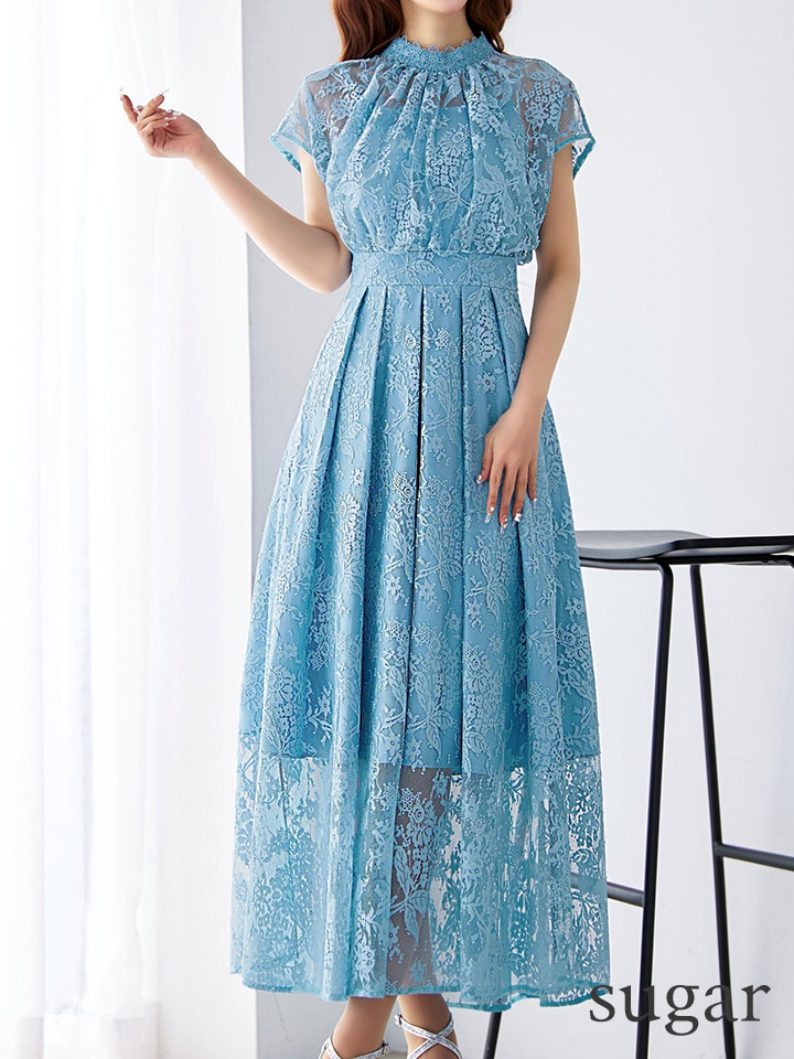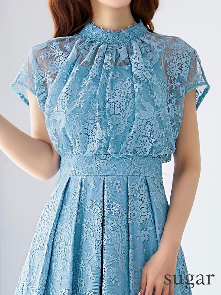 - > XLサイズあり【AMORA GRACE / アモーラグレース】 オケージョンドレス/ パーティードレス/ お呼ばれドレス/ 総レース/ ハイネック/ フラワーレース/ フレンチスリーブ/ フレア/ Aライン/ ミモレ丈/ ワンピース/ ミディアムドレス/ キャバドレス[OF05]