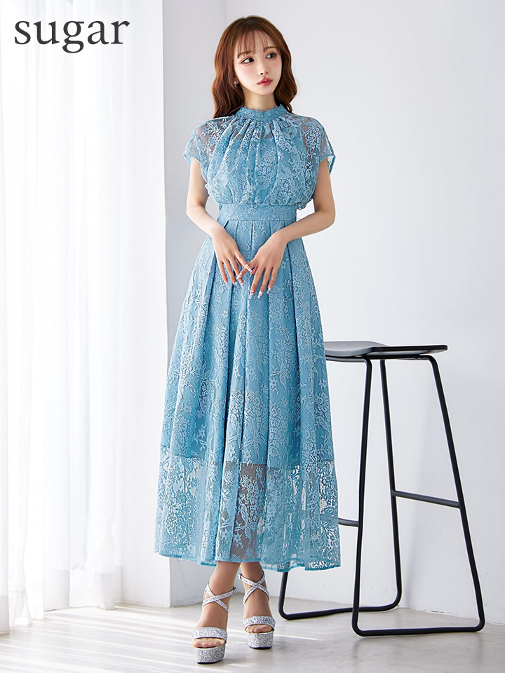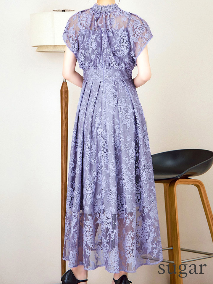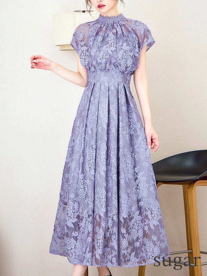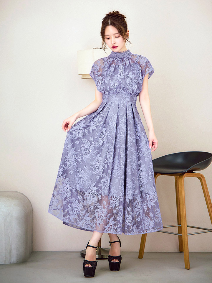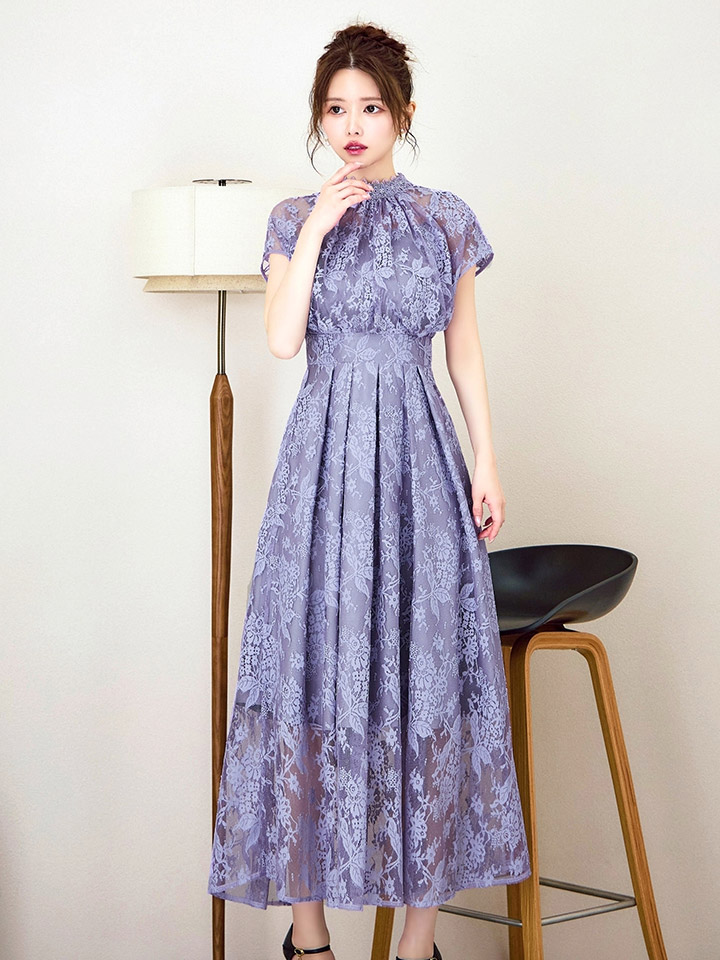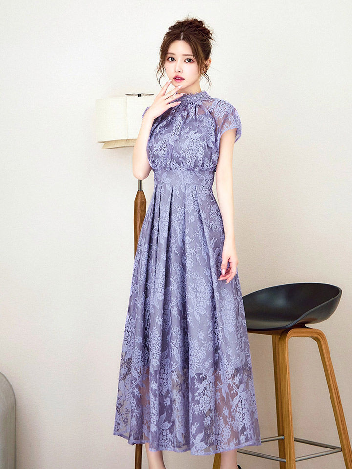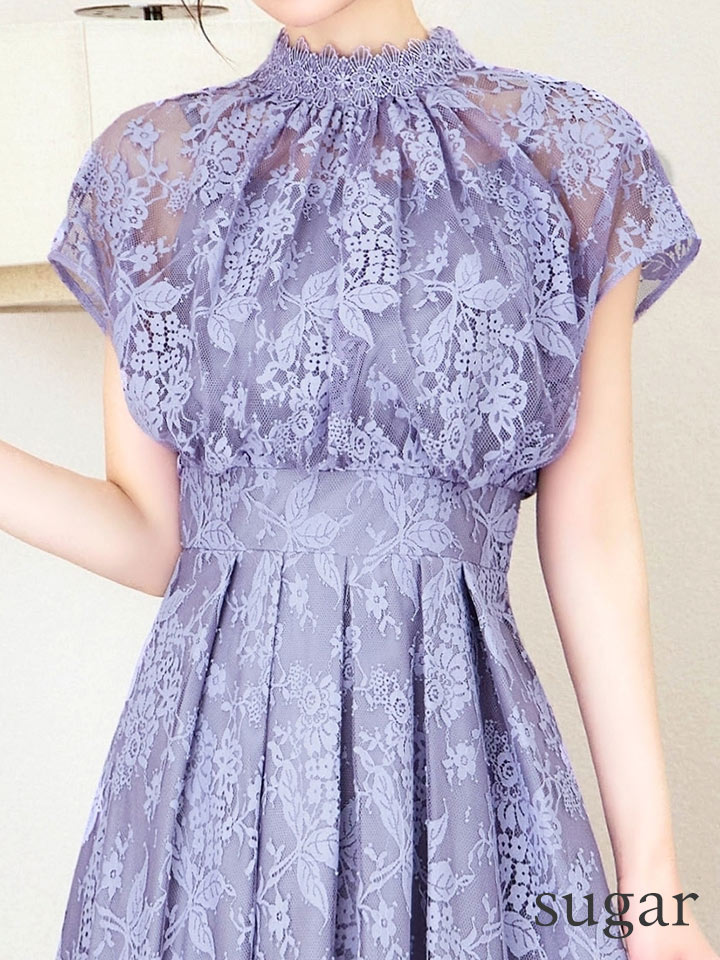 XLサイズあり【AMORA GRACE / アモーラグレース】 オケージョンドレス/ パーティードレス/ お呼ばれドレス/ 総レース/ ハイネック/ フラワーレース/ フレンチスリーブ/ フレア/ Aライン/ ミモレ丈/ ワンピース/ ミディアムドレス/ キャバドレス[OF05] [G60220HL-DusMI-S2509]