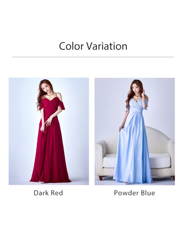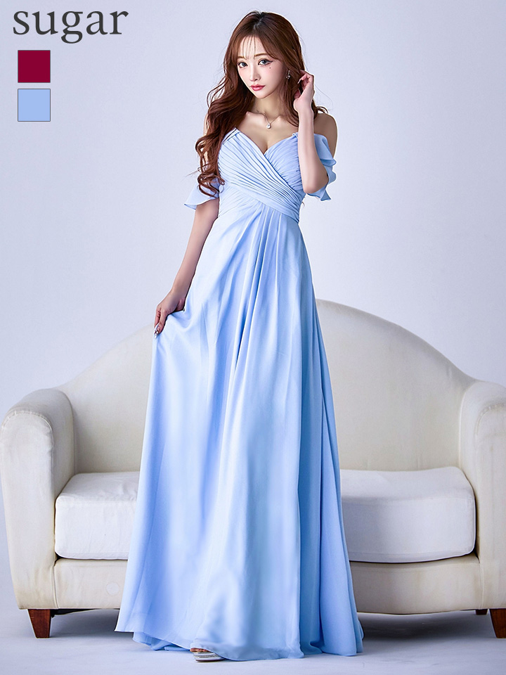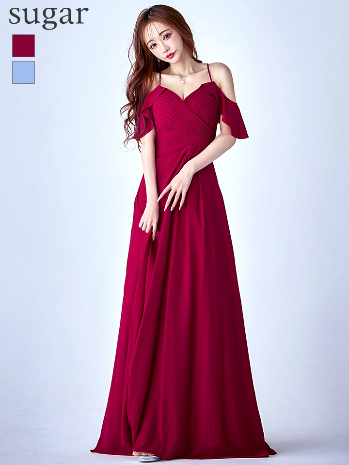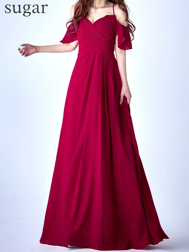 Lサイズあり【UNA VALERIE / ウナヴァレリェ】シンプル/ ワンカラー/ タック/ オフショル/ キャミソール/ フレア/ Aライン/ ロングドレス/ キャバドレス[OF05] [V60217L-Wine-S2509]