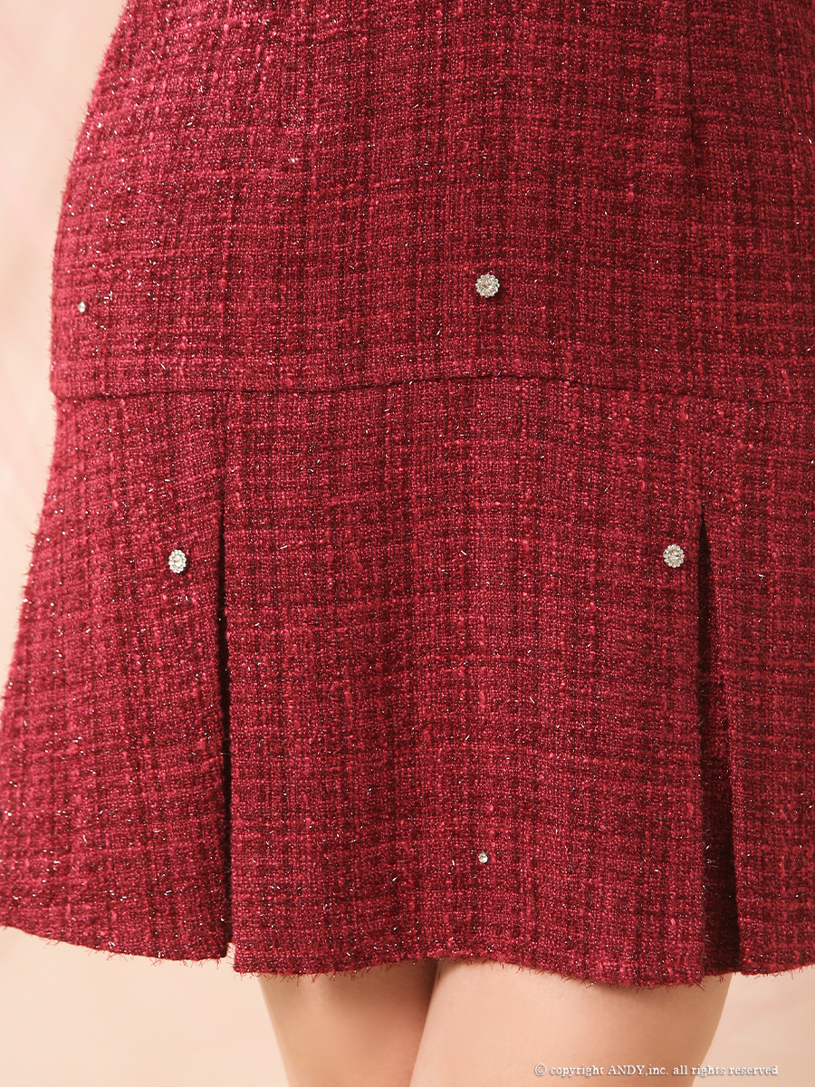 XSサイズあり【an /アン】ビジュー/ ツイード/ バストジップ/ ハーフスリーブ/ シアーレース/ 谷間魅せ/ プリーツ/ フレア/ ミニドレス/ キャバドレス[OF05] [AOC3980-WR-2509]