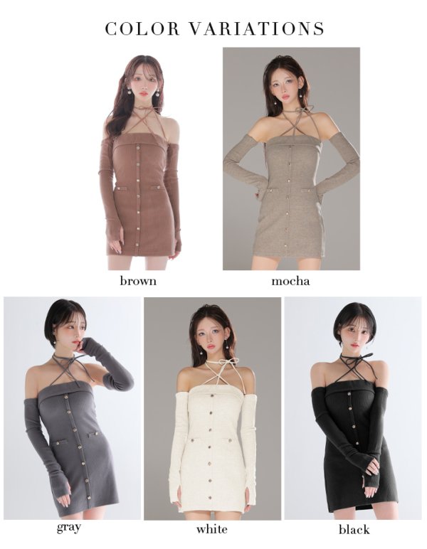 XSサイズあり【Glossy/グロッシー】アームウォーマー付き/ リブニット/ フロントボタン/ タイト/ ミニドレス/ キャバドレス[OF08] [GL4321-BR-2509]