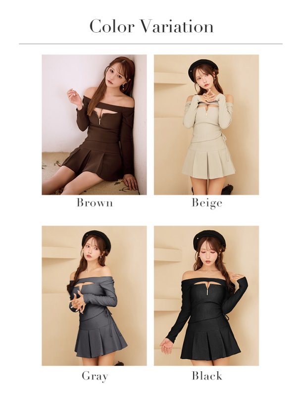 - > XSサイズあり【Glossy/グロッシー】オフショルダー/ ロングスリーブ/ バストカット/ フレア/ セットアップ/ ミニドレス/ キャバドレス[OF08]