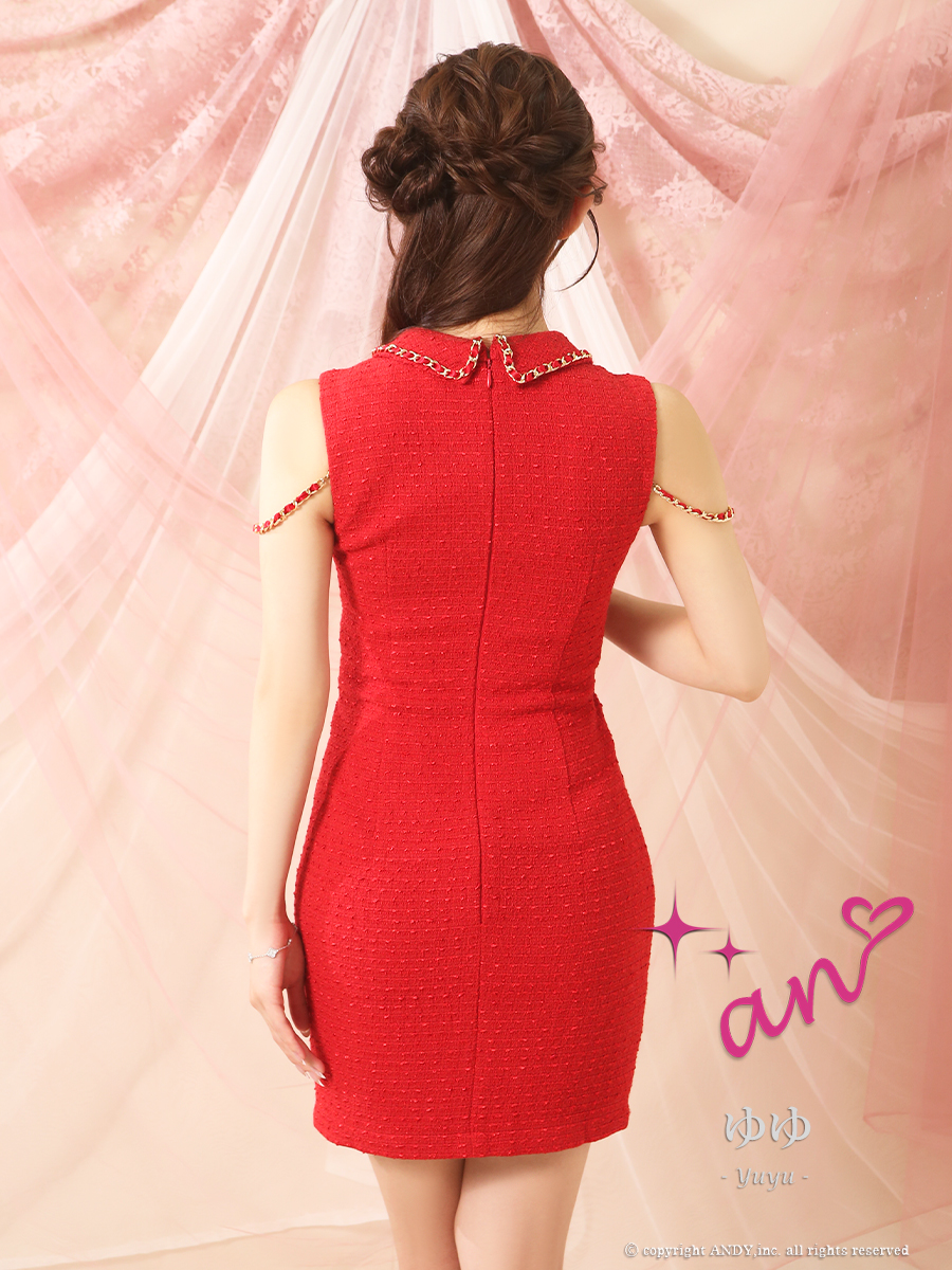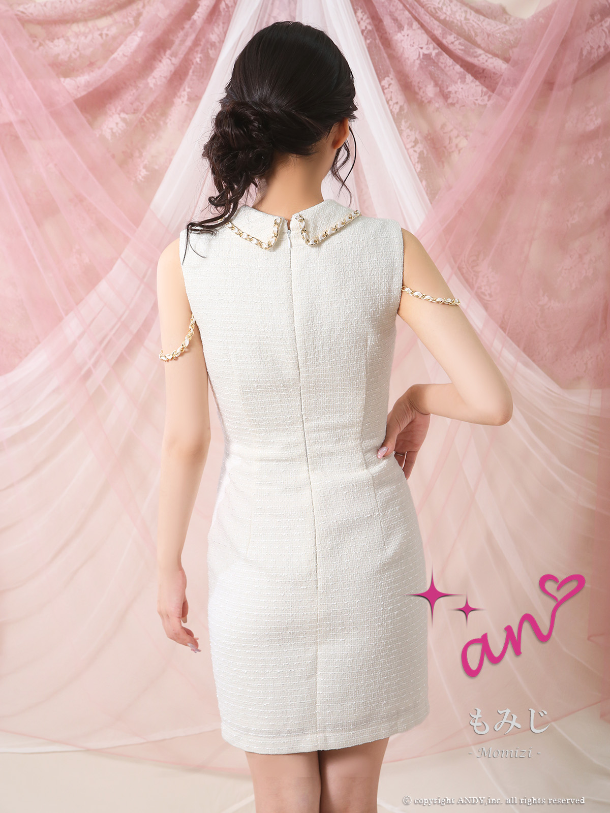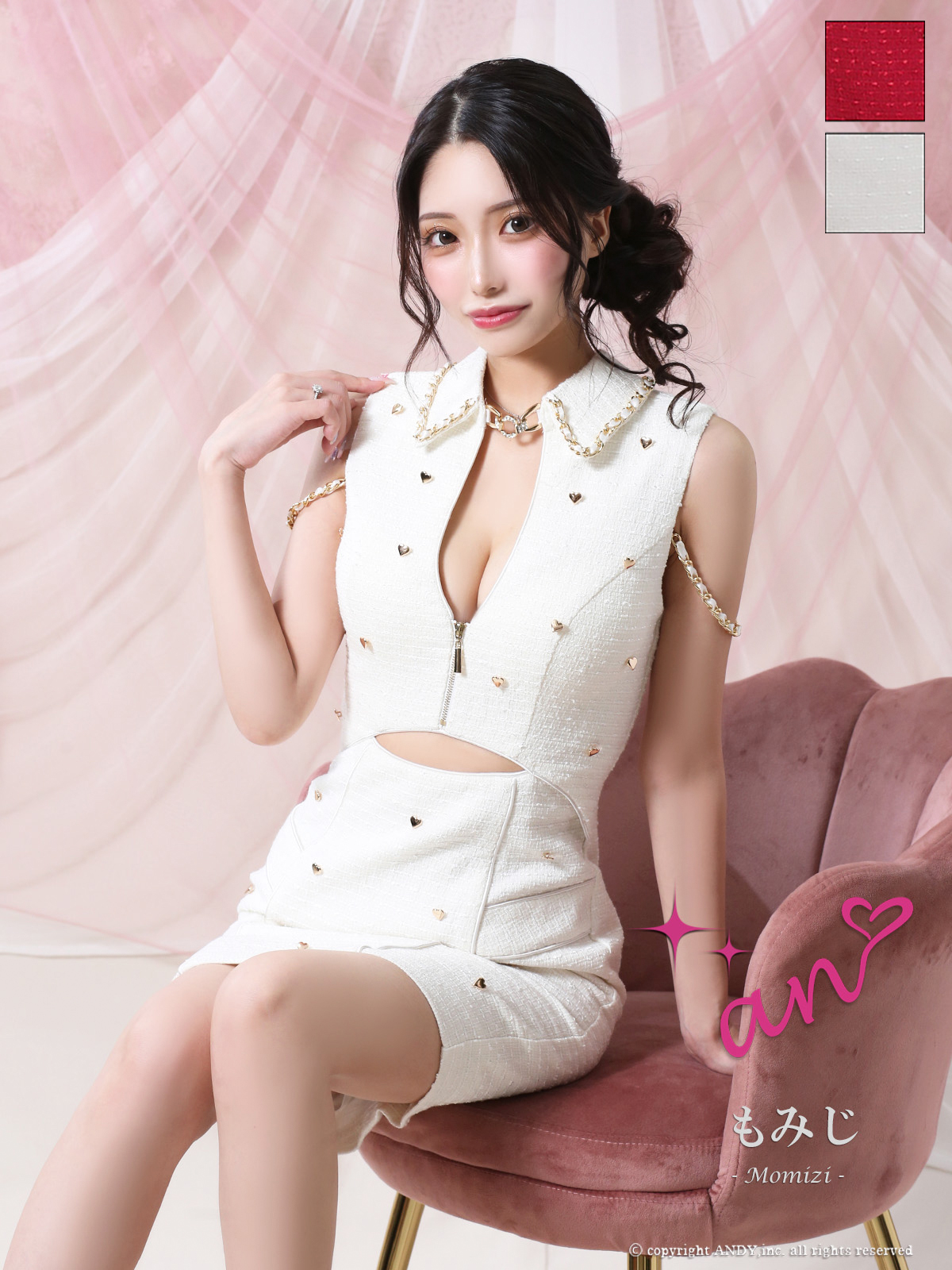 - > XSサイズあり【an /アン】ハートスタッズ/ 襟付き/ ノースリーブ/ チェーン/ ツイード/ ウエストカットアウト/ タイト/ ミニドレス/ キャバドレス[OF05]