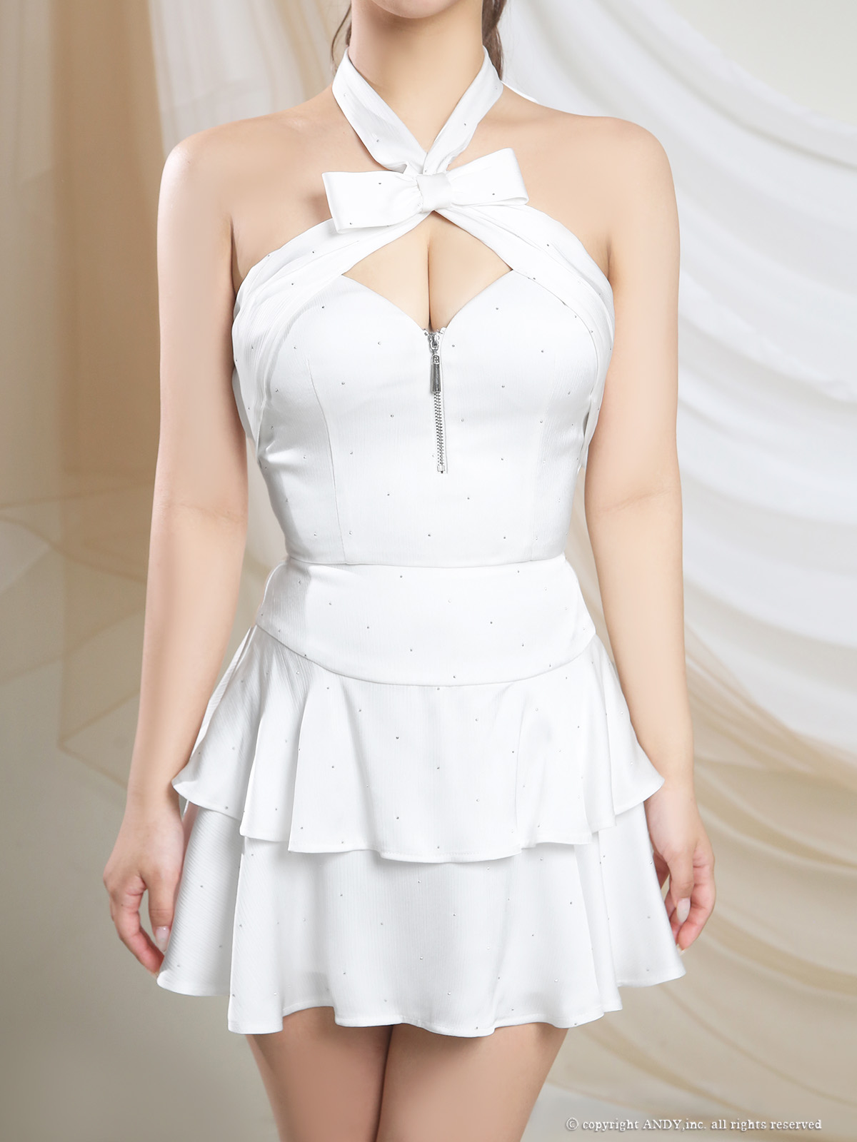 - > XSサイズあり【an /アン】ホルターネック/ リボン/ バストジップ/ ラインストーン/ 谷間魅せ/ セットアップ/ フレア/ ミニドレス/ キャバドレス[OF05]