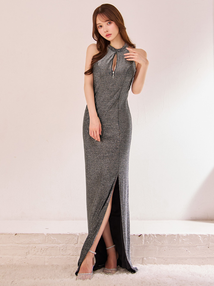 【MONOQLO/モノクロ】バックオープン/ アメスリ/ ビジューチェーン/ バストジップ/ スリット/ ノースリーブ/ ストレッチ/ ロングドレス/ キャバドレス/ long[OF05] [MO23023-B-S250920]