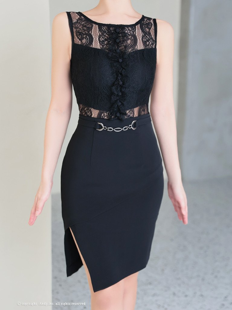 【ANDY/アンディ】レース/ ノースリーブ/ チェーンベルト/ 切替/ アシンメトリー/ タイト/ ミニドレス/ キャバドレス[OF05]