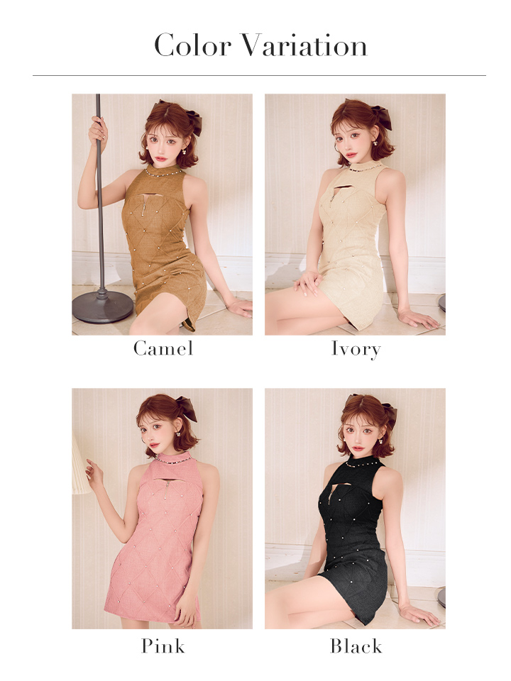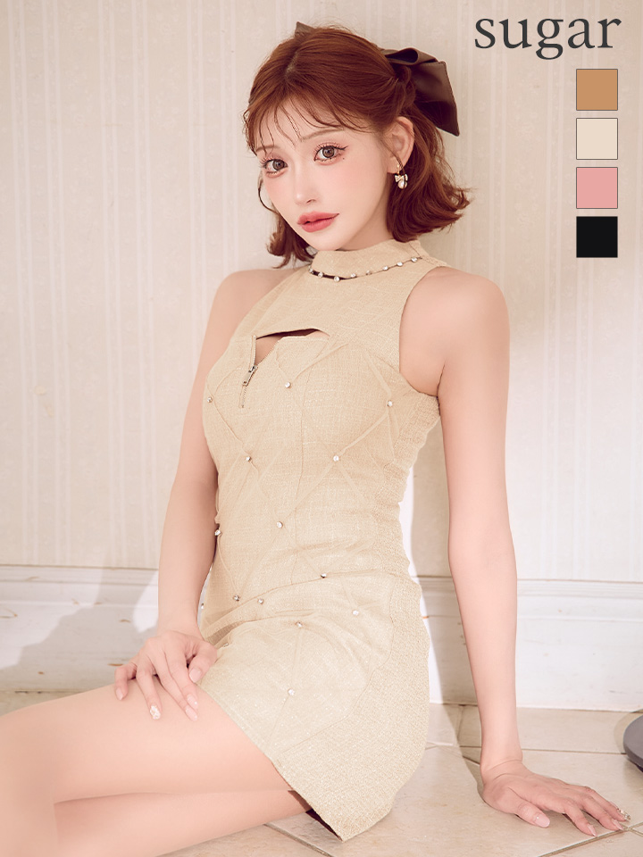 XSサイズあり【ROBE de FLEURS/ローブドフルール】ビジュー/ バストジップ/ タイト/ ミニドレス/ キャバドレス[OF08] [FM4162-CAMEL-S250922]