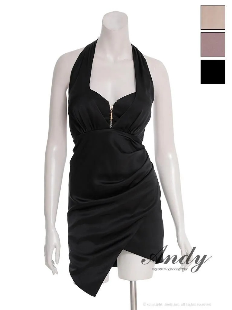 - > XSサイズあり【ANDY/アンディ】シンプル/ ホルターネック/ ドレープ/ バストジップ/ ノースリーブ/ アシンメトリー/ タイト/ ミニドレス/ キャバドレス[OF05]