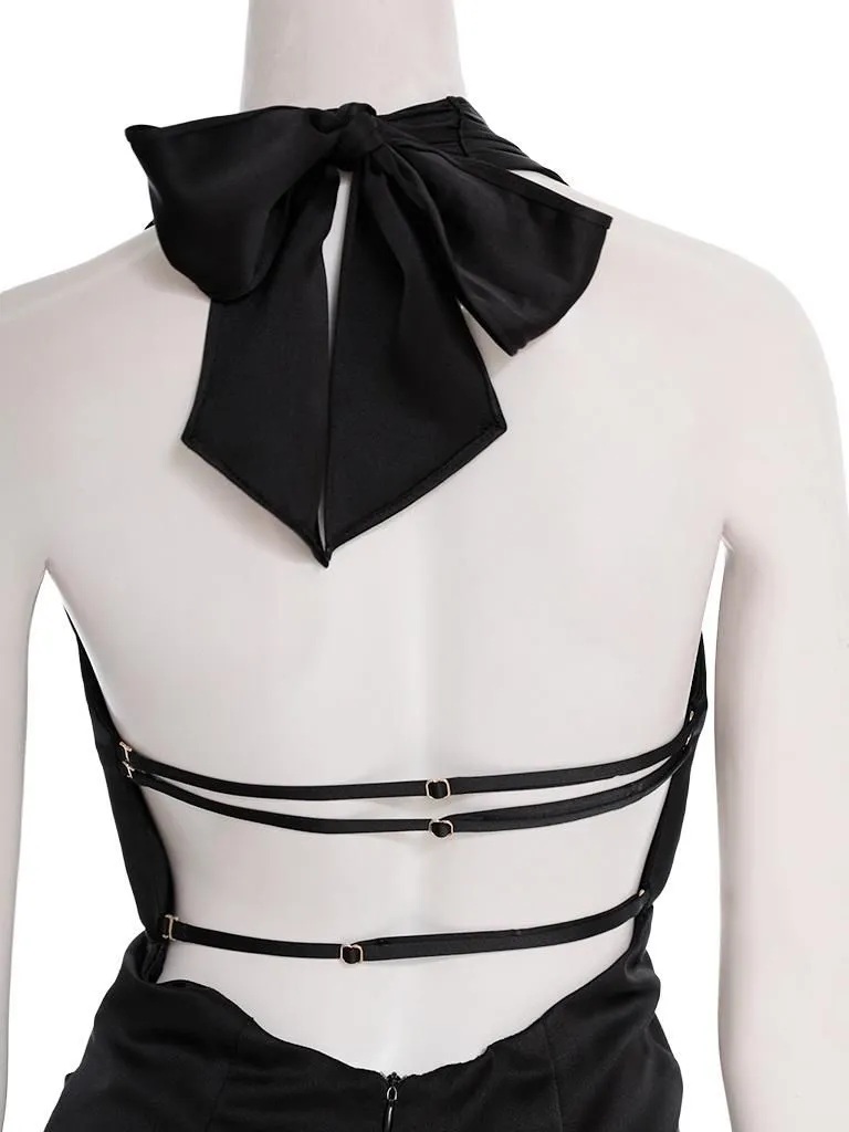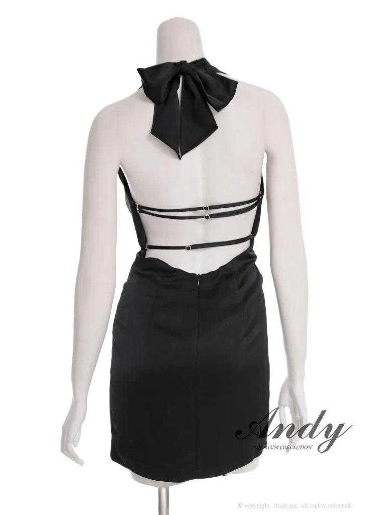 大胆に開いたバックデザインは大人の色気醸し出し、ネックリボンで可愛さもプラス◎