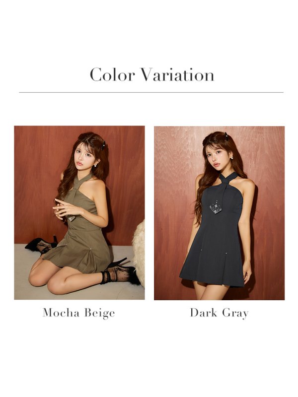 XSサイズあり【ANGEL R/エンジェルアール】ネクタイデザイン/ プリーツ/ ビジュー/ パール/ フレア/ マイクロミニドレス/ キャバドレス[OF2] [AR25241-DGY-S250925]