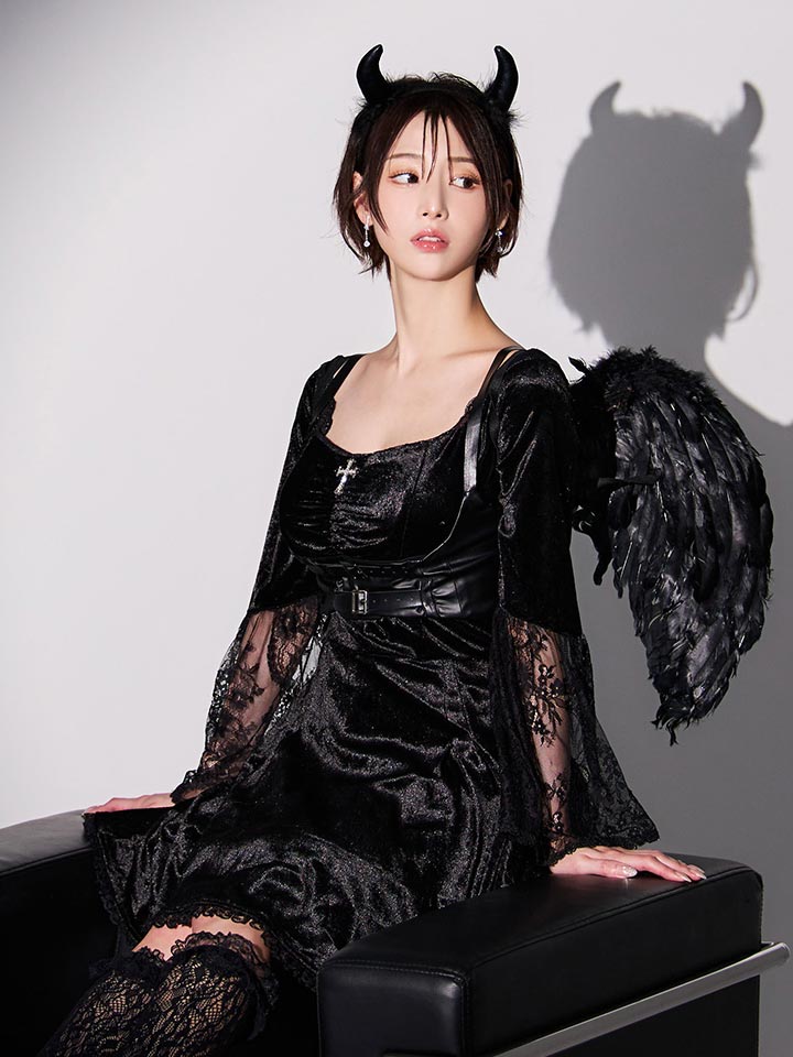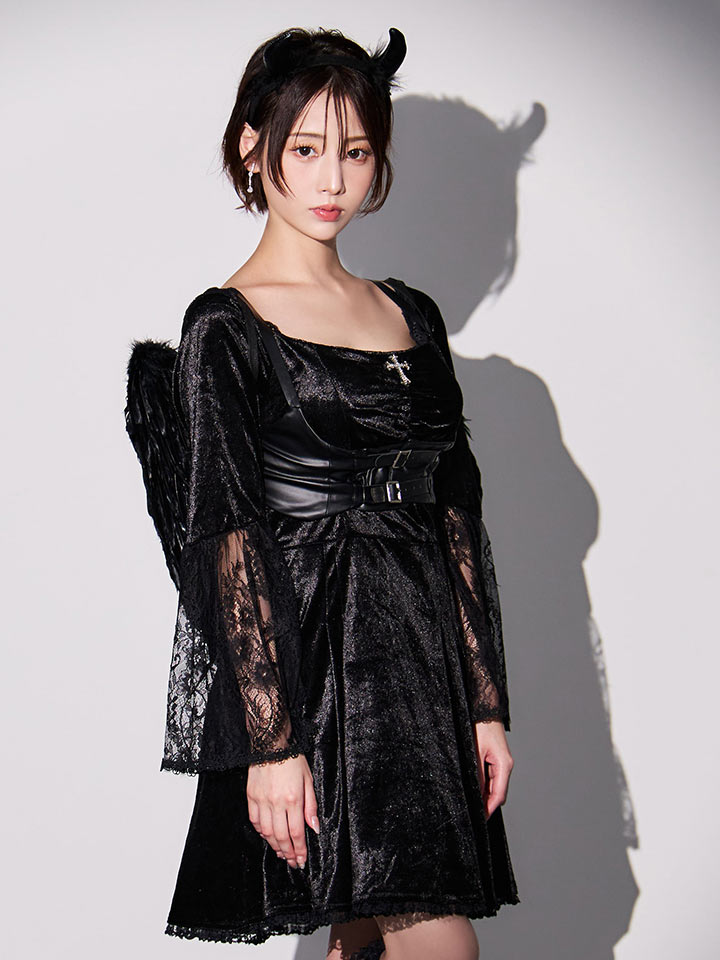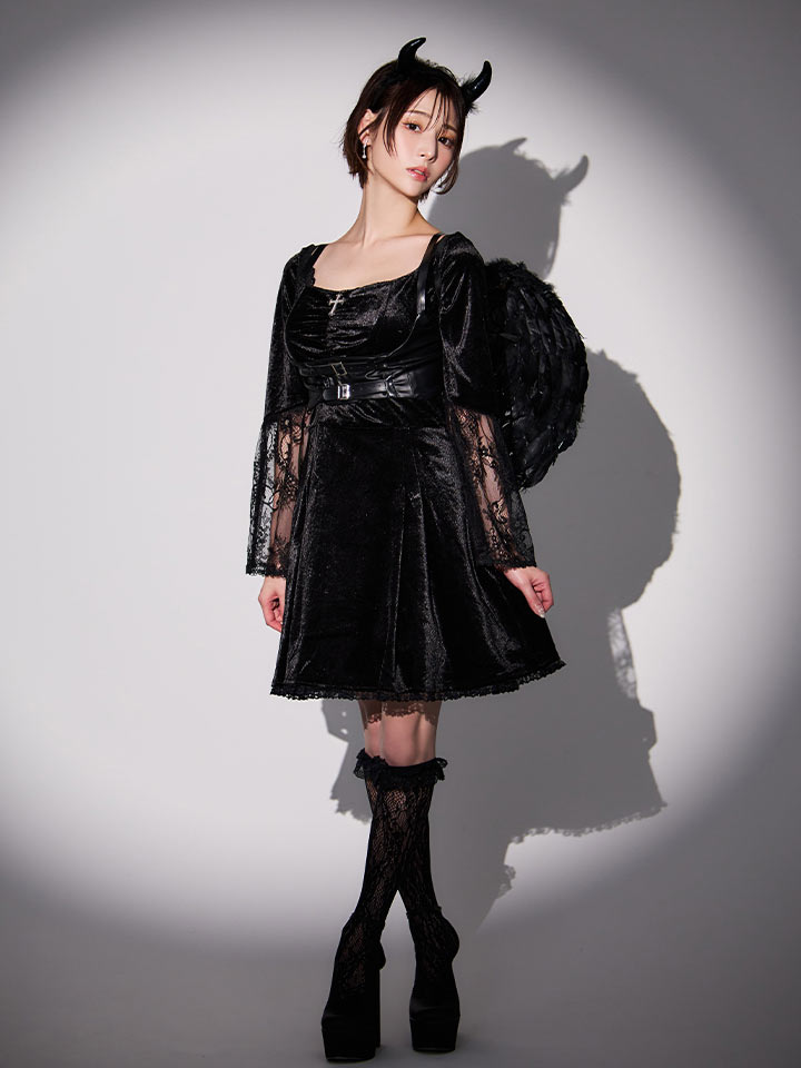 【即日発送】【ハロウィン】ハーネスデビルベロアワンピース【コスプレ5点セット】【XS-XLサイズ/1カラー】[HC03]
