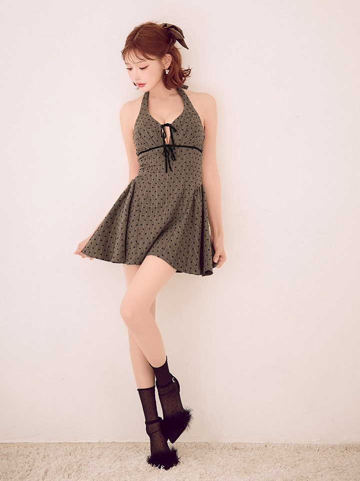 【ANGEL R/エンジェルアール】Vカット/ バストリボン/ ハート/ フレア/マイクロ/ ミニドレス/ キャバドレス[OF2] [AR25850-MOC-S250926]