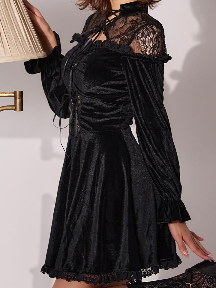 【SALE!!】【即日発送!】【ハロウィン】ブラックキャットベロアワンピース 【コスプレ3点セット】[HC03]