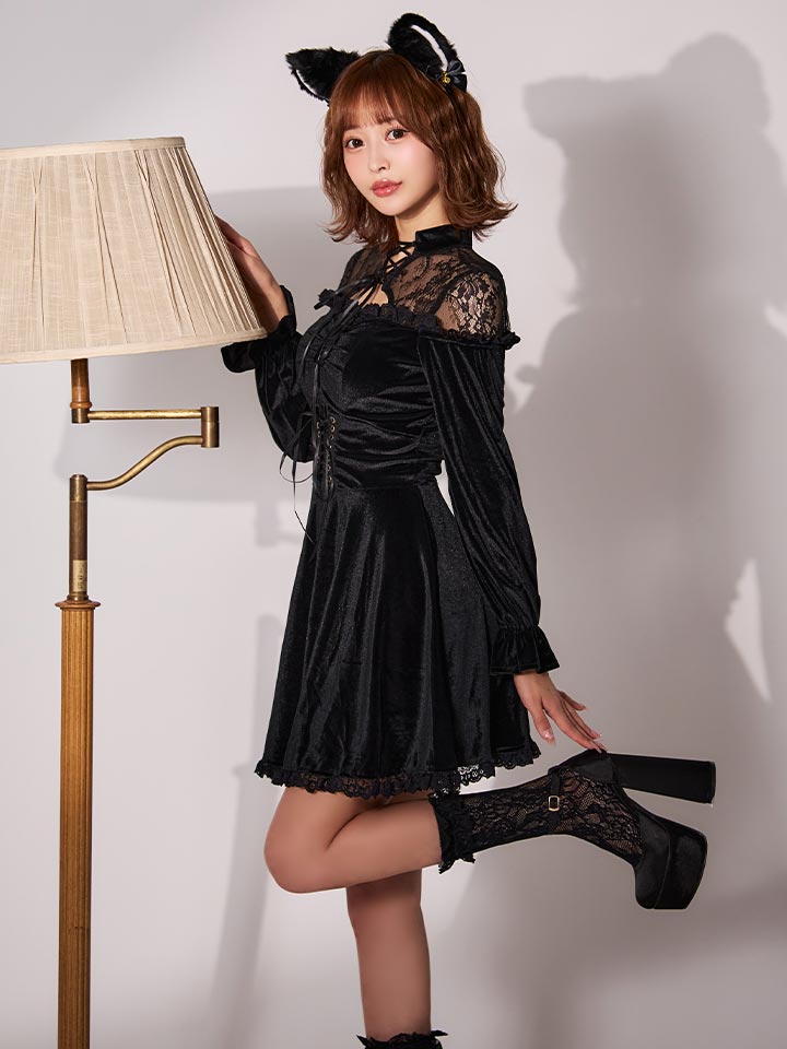 ベロア生地が印象的☆ブラックキャットコスプレ♥