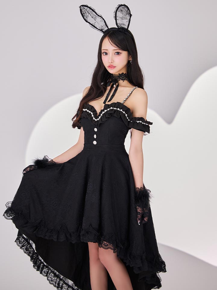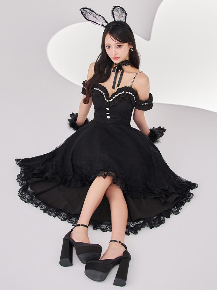 うさぎ バニー リボン 甘い あざと コンカフェ スイート あまい ショートインロング フレアスカート レース セクシー コスプレ