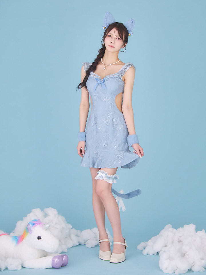 【即日発送】【ハロウィン】 キャットレースミニワンピ 【コスプレ5点セット】【XS-Mサイズ/3カラー】[HC03] [HW-001-YN-dzw-BL-25CC]