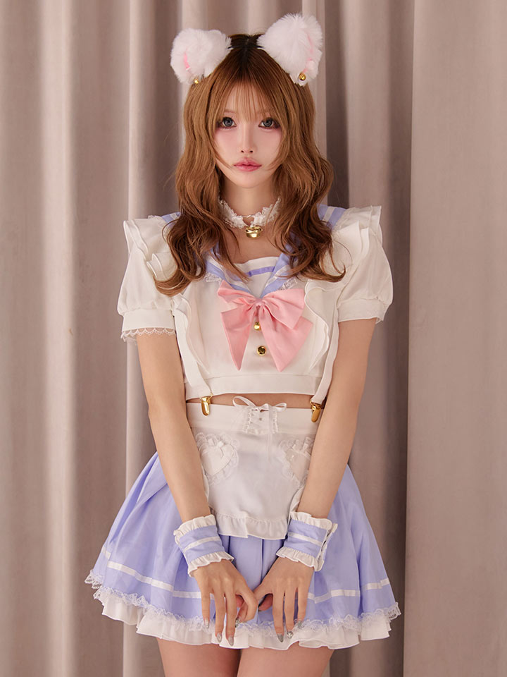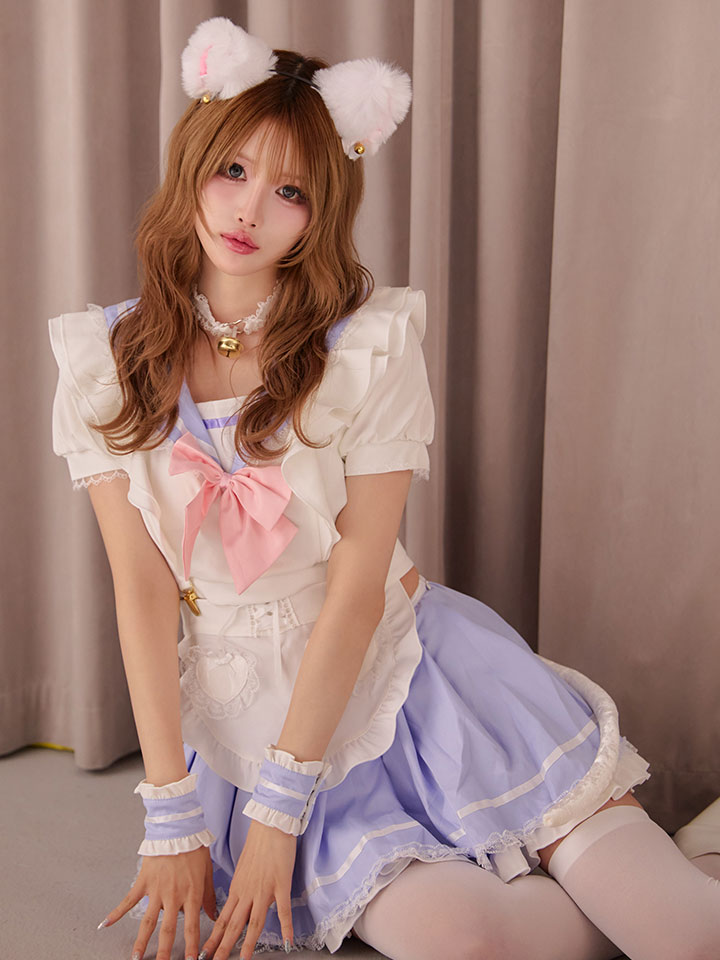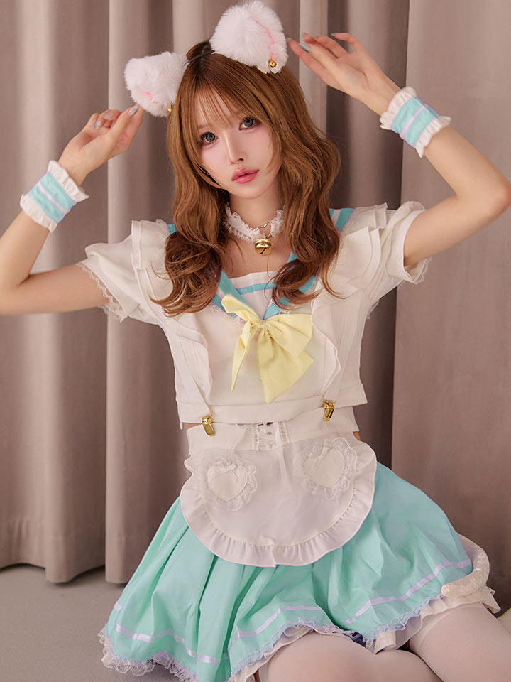カチューシャ・トップス・スカート・サスペンダー・手首飾り、チョーカー、リボン、しっぽ、ニーハイソックス