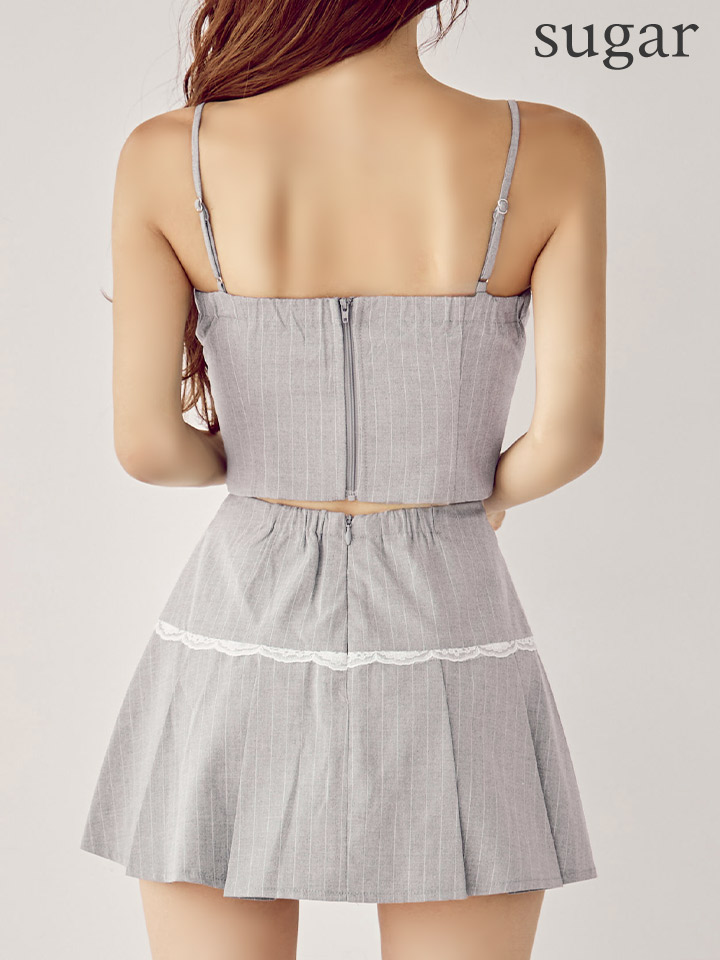 XSサイズあり【ROBE de FLEURS/ローブドフルール】ストライプ柄/ スカラップレース/ ツーピース/ フレア/ ミニドレス/ キャバドレス[OF08] [FM4141-GY-S250926]