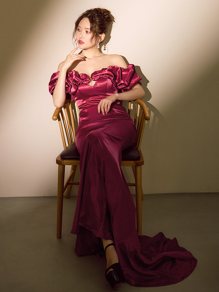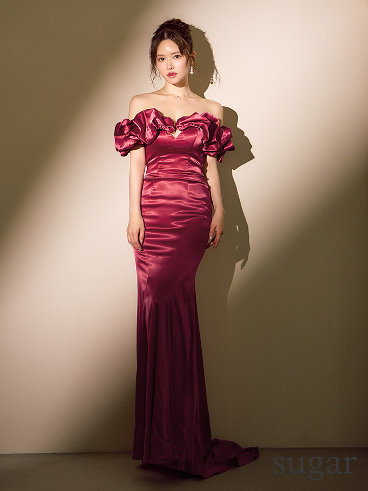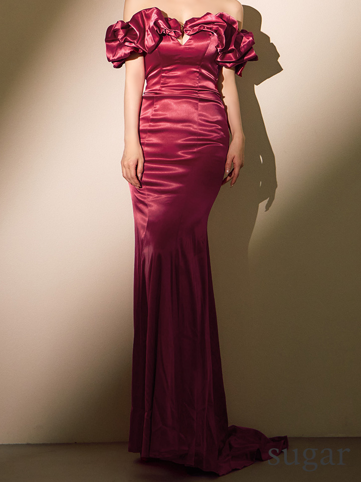 【ANGEL R/エンジェルアール】 フリルスリーブ/ オフショル/ バストチャーム/ ロングドレス/ キャバドレス[OF2]