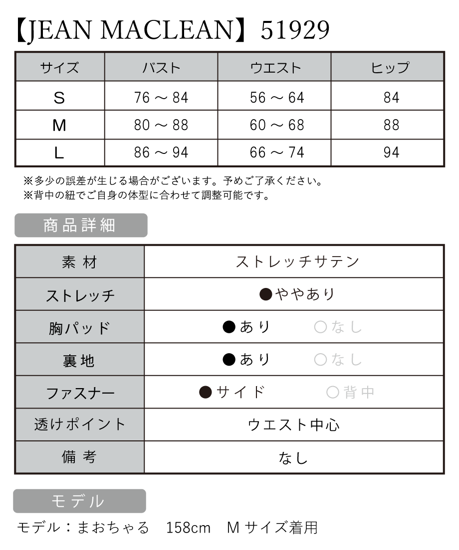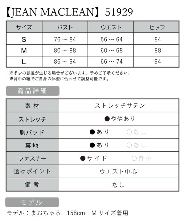 B:76-84 / W:56-64 / H:84 [着丈](脇下)約132cm |