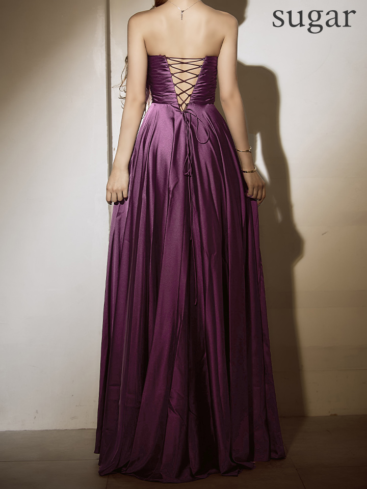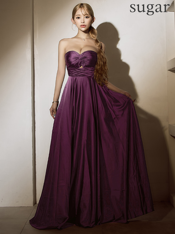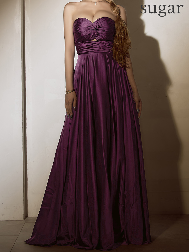 【予約商品/4月上旬発送予定】【JEAN MACLEAN/ジャンマクレーン】サテン/ ワンカラー/ ベアトップ/ バストギャザー/ カットアウト/ フレア/ ロングドレス/ キャバドレスlong[OF2A]