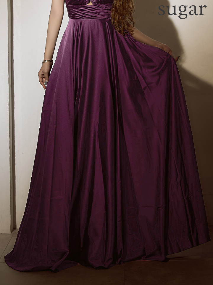 艶感のあるサテンにエレガントなフレアが映えるロングドレス♡