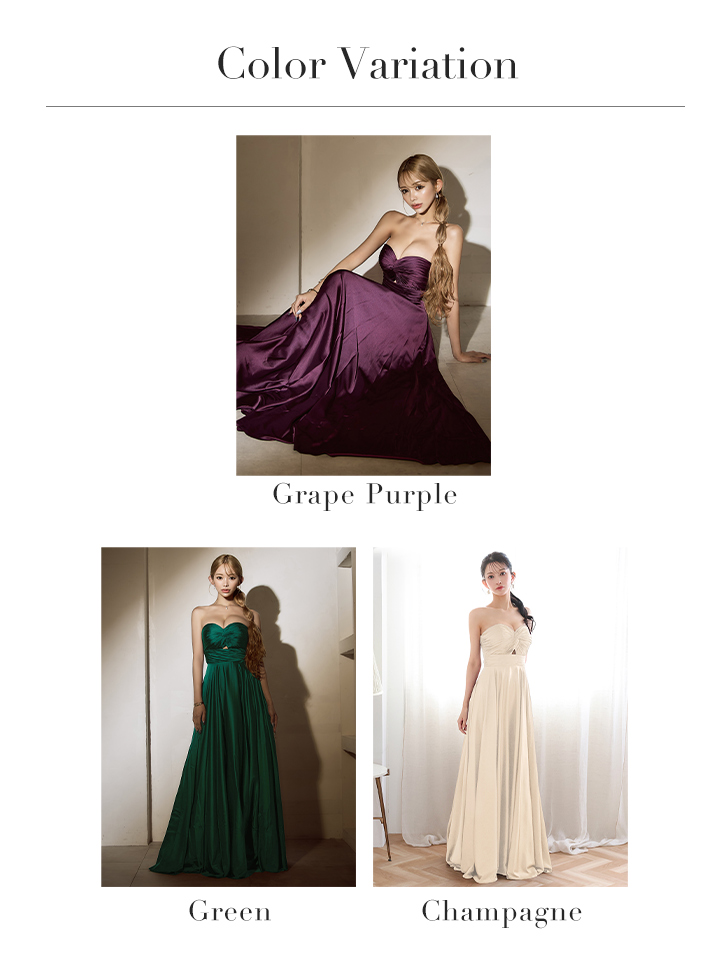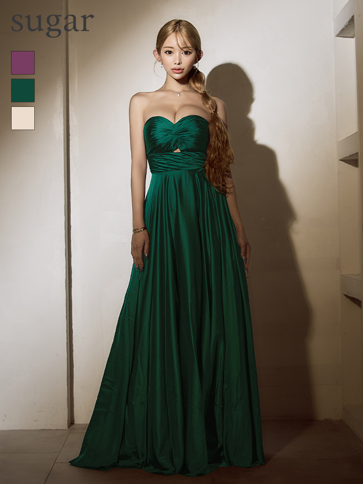 【予約商品/4月上旬発送予定】【JEAN MACLEAN/ジャンマクレーン】サテン/ ワンカラー/ ベアトップ/ バストギャザー/ カットアウト/ フレア/ ロングドレス/ キャバドレスlong[OF2A] [51929-JM-GR-S250927]