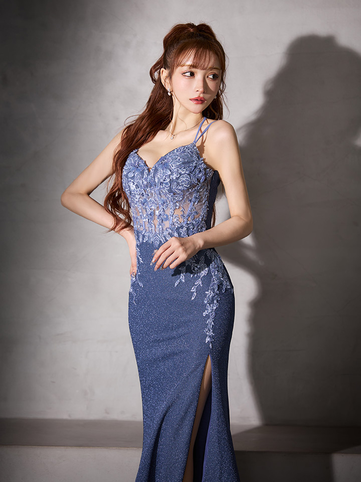 【IRMA/イルマ】ラメニット/ フラワー刺繍/ シースルー/ キャミソール/ スリット/ マーメイド/ ロングドレス/ キャバドレス long[OF2A]【一部予約商品/2月下旬発送予定】 [51922-IR-B-S250927]