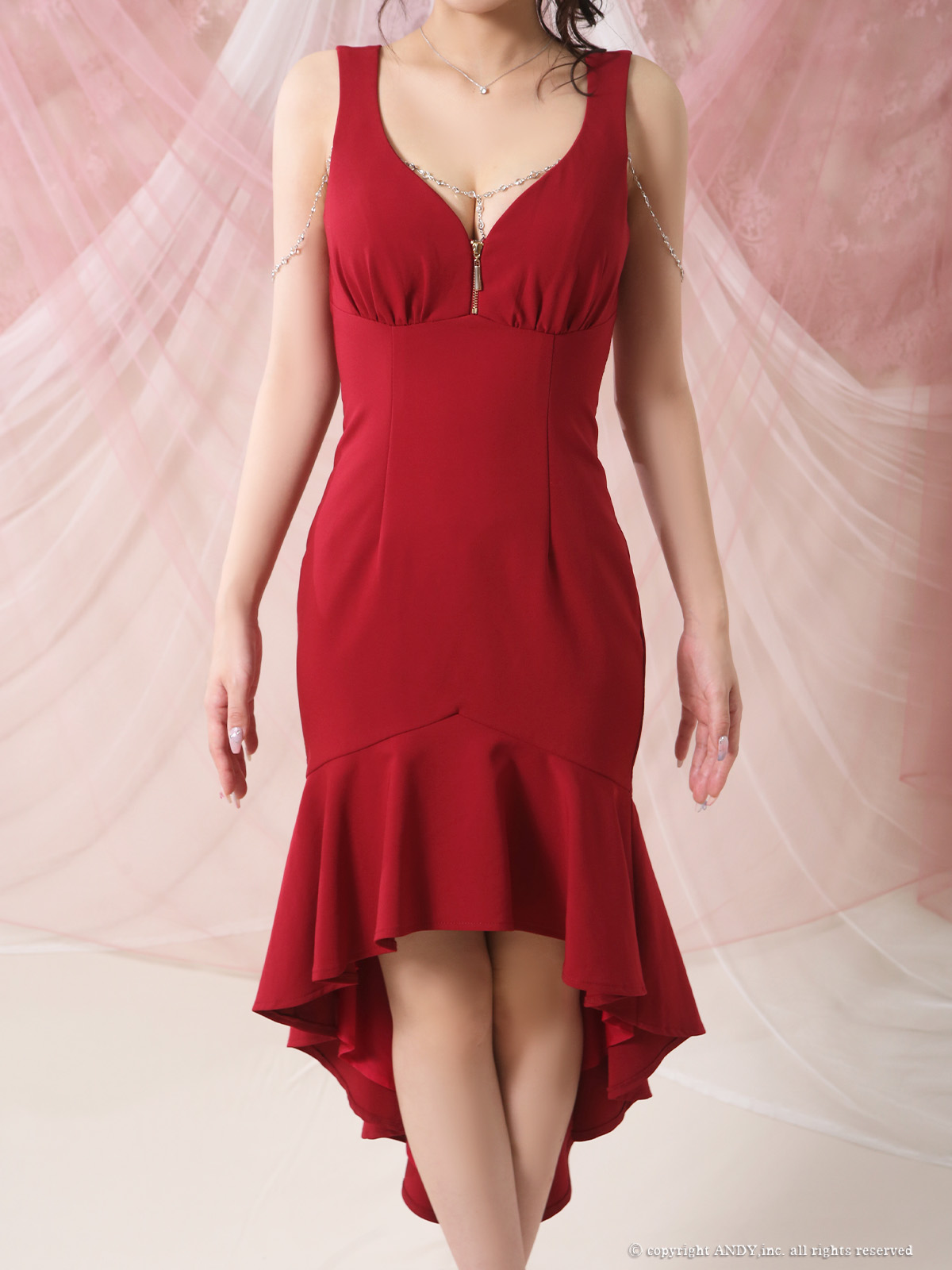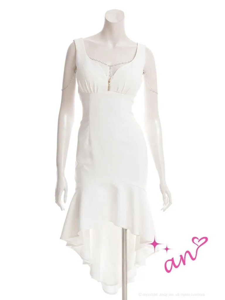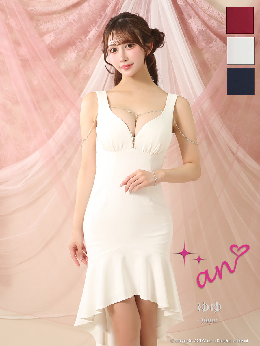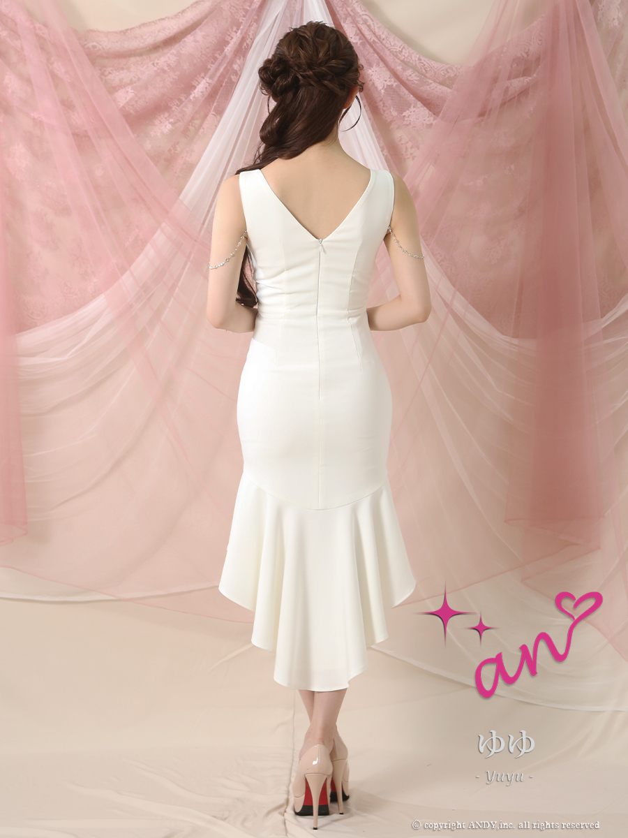 - > XSサイズあり【an /アン】チャーム付き/ ノースリーブ/ バストジップ/ テールカット/ マーメイド/ ミディアムドレス/ キャバドレス[OF05]