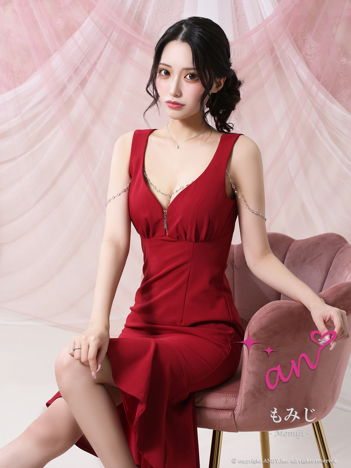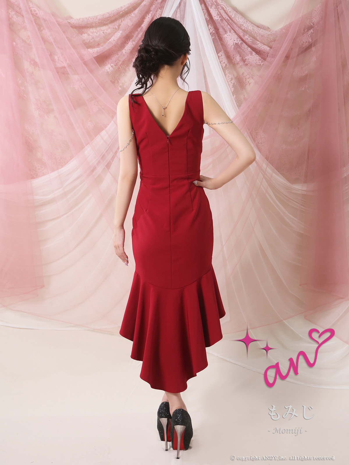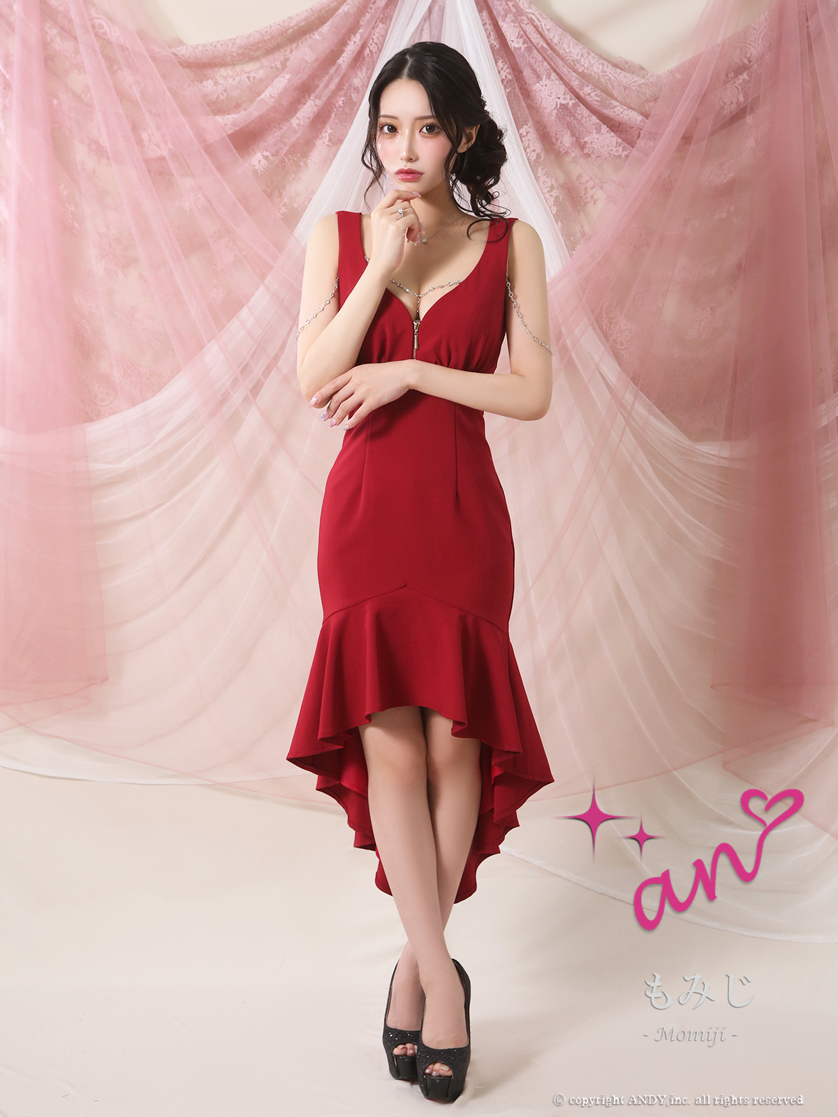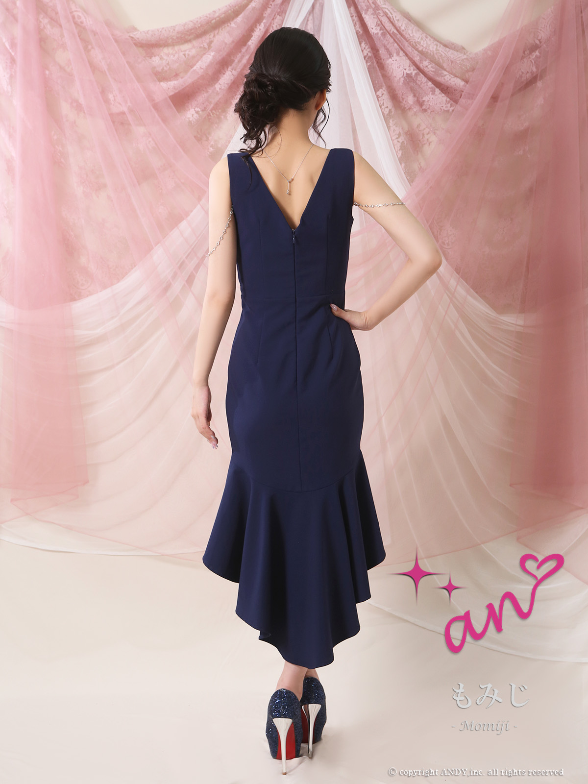 - > XSサイズあり【an /アン】チャーム付き/ ノースリーブ/ バストジップ/ テールカット/ マーメイド/ ミディアムドレス/ キャバドレス[OF05]