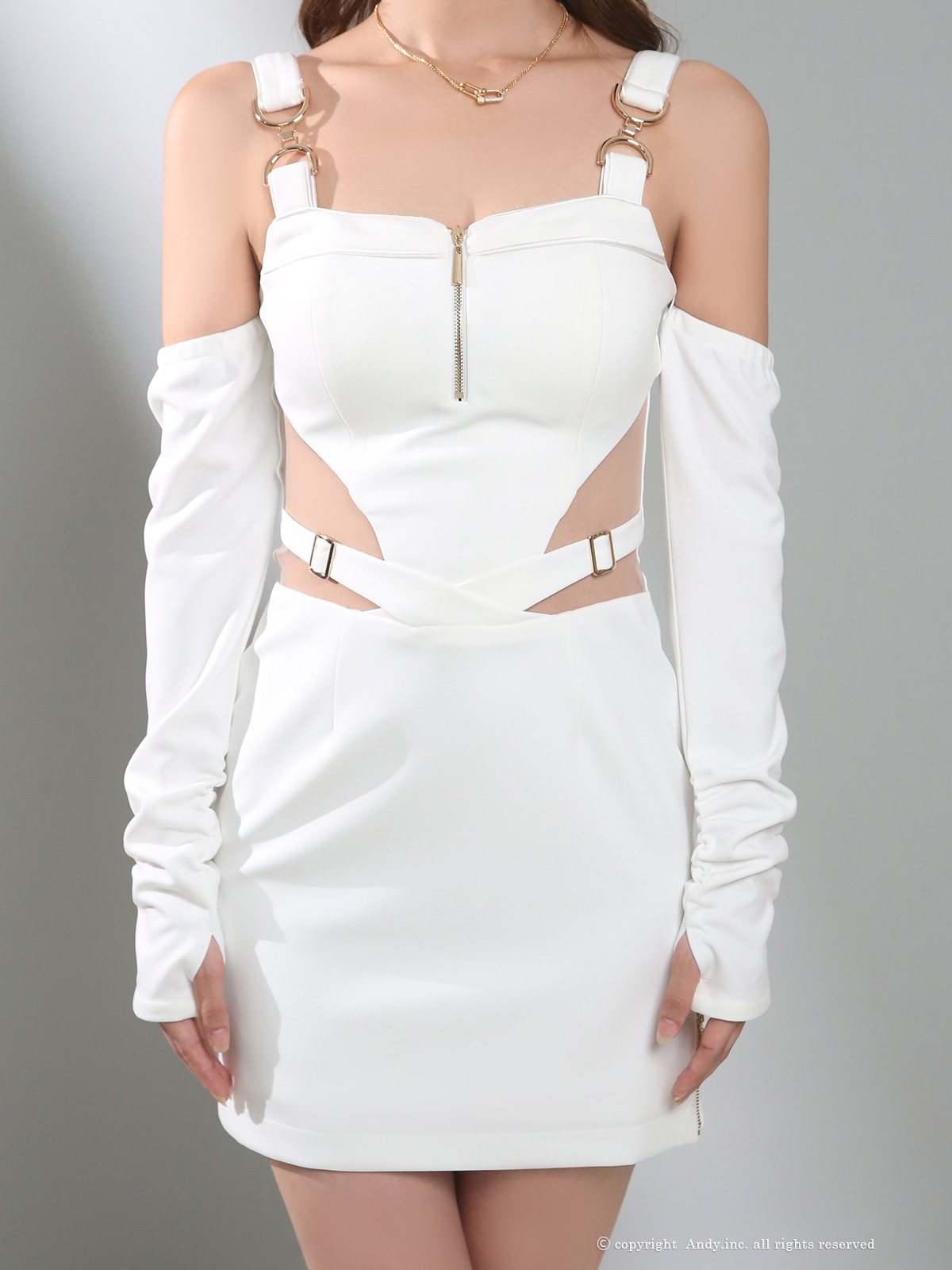 XSサイズあり【Andy GLAMOROUS/アンディグラマラス】2way/ 袖付き/ ノースリーブ/ バストジップ/ カットアウト/ シアー/ タイト/ ミニドレス/ キャバドレス[OF05] [GMS-V891-W-2509]