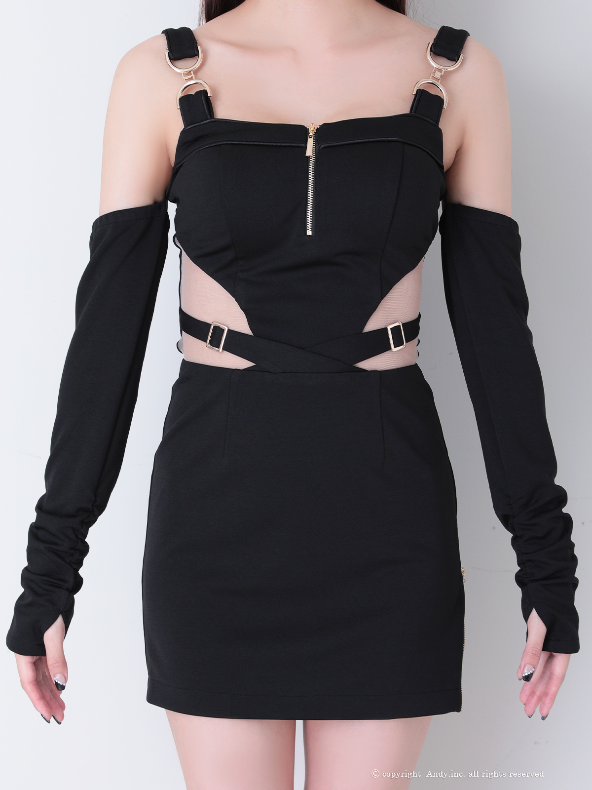 - > XSサイズあり【Andy GLAMOROUS/アンディグラマラス】2way/ 袖付き/ ノースリーブ/ バストジップ/ カットアウト/ シアー/ タイト/ ミニドレス/ キャバドレス[OF05]