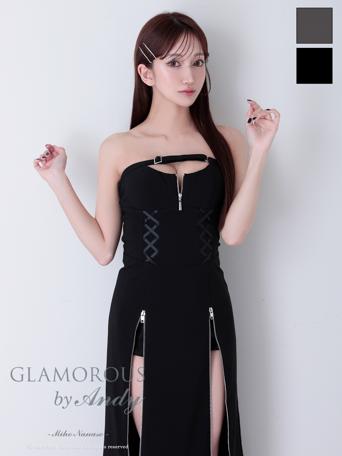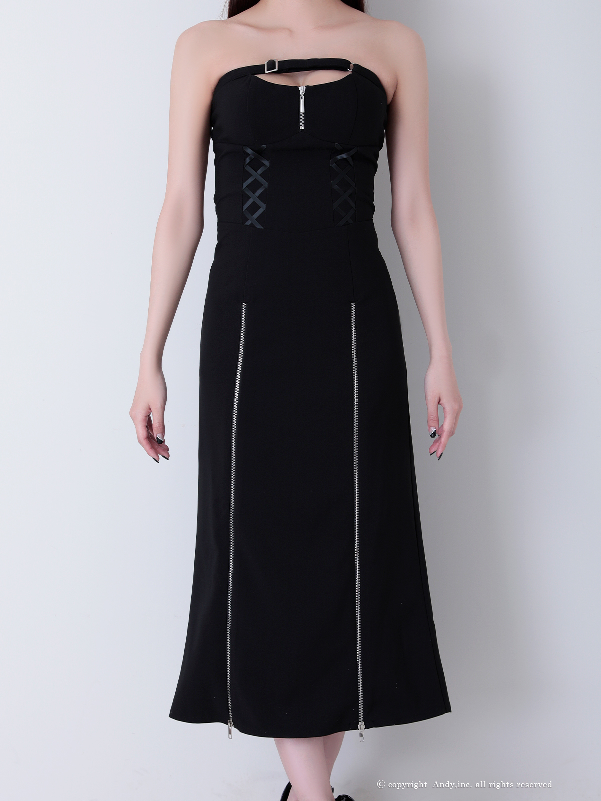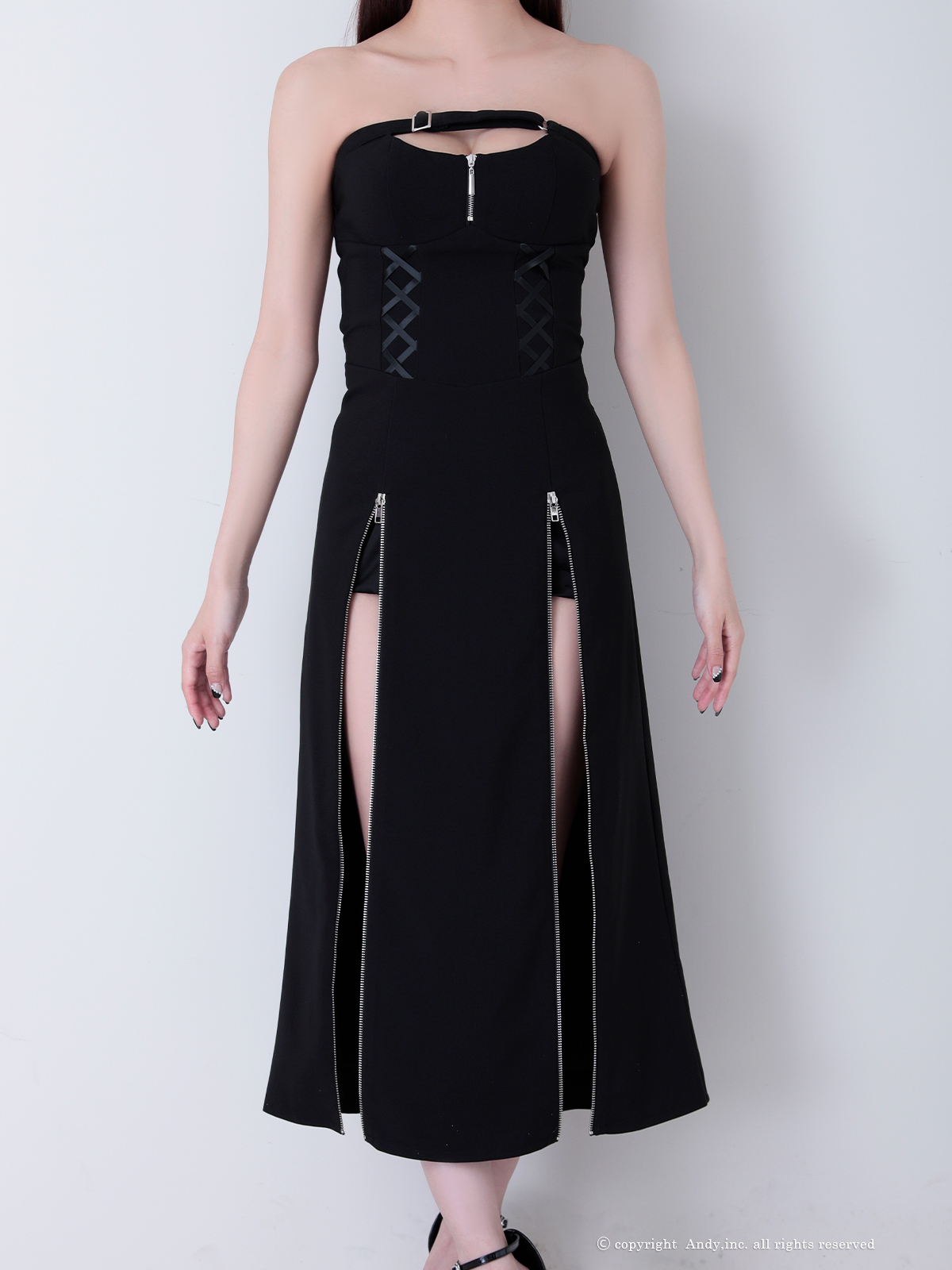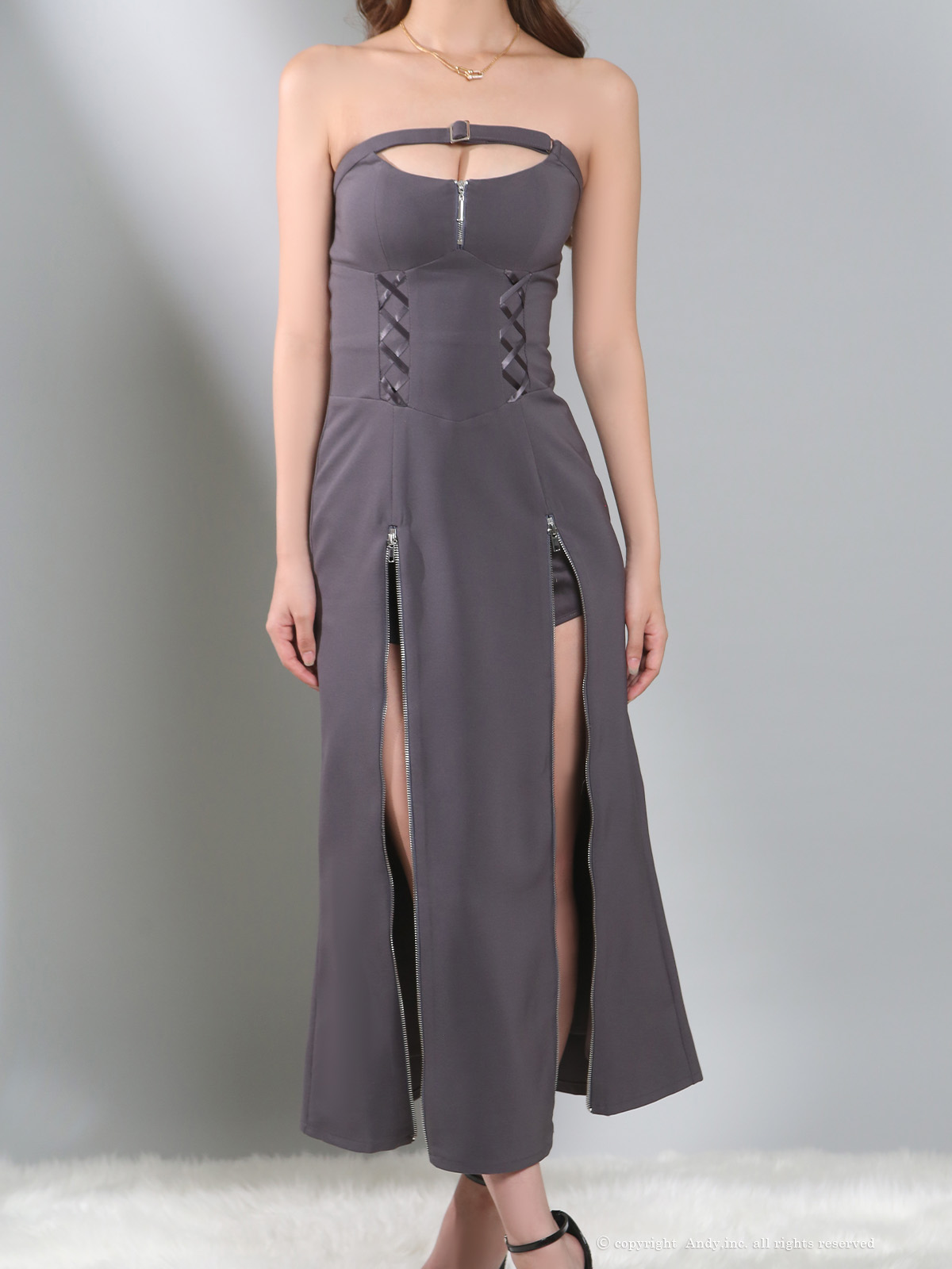 - > XSサイズあり【Andy GLAMOROUS/アンディグラマラス】ジップデザイン/ カットアウト/ ベア/ ストレッチ/ インナーパンツ付き/ ミディアムドレス/ キャバドレス long[OF05]