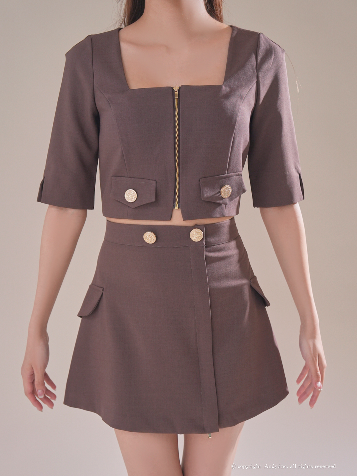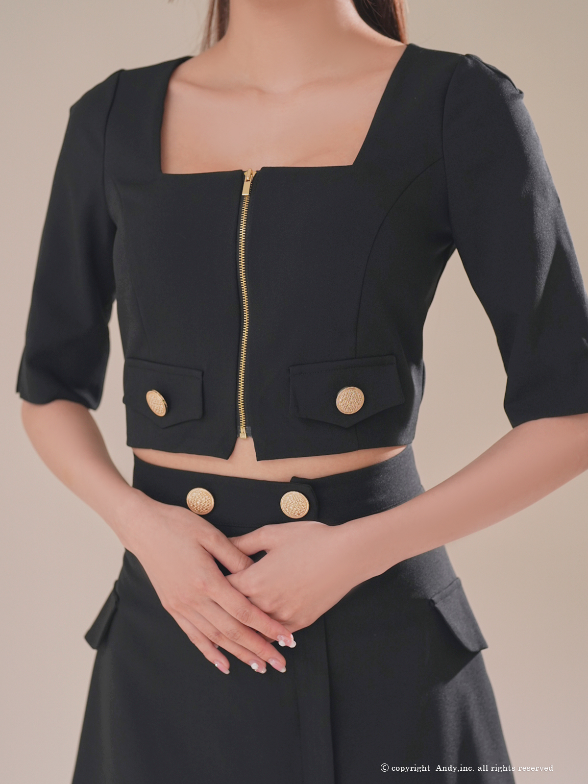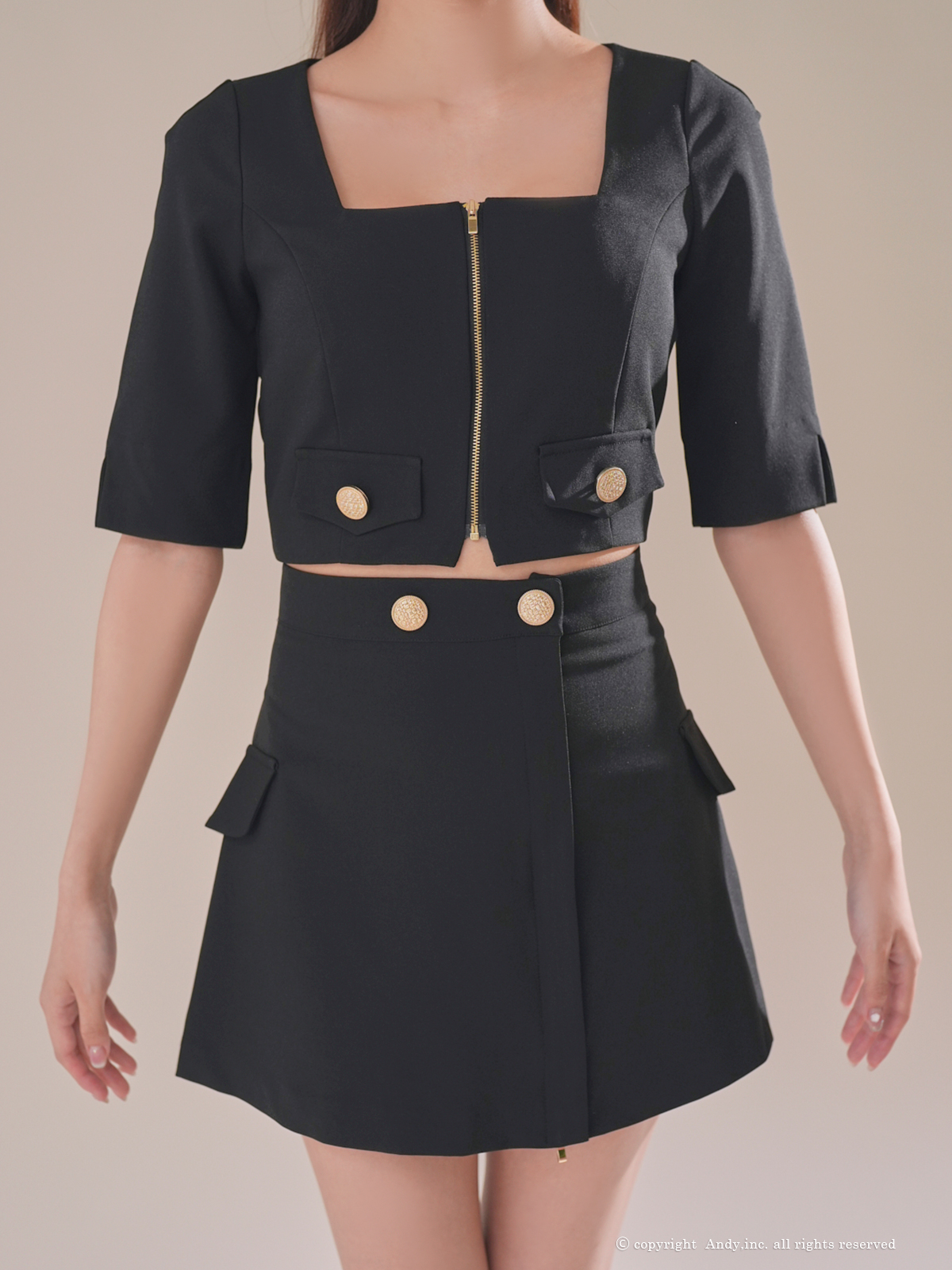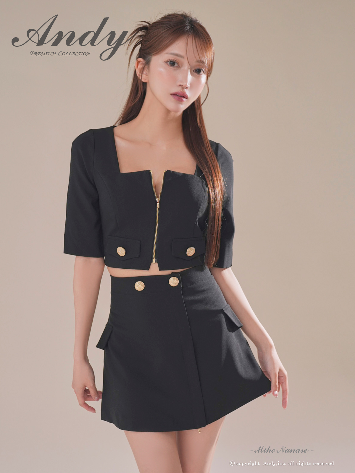 XSサイズあり【ANDY/アンディ】ゴールドボタン/ スクエアネック/ フロントジップ/ ハーフスリーブ/ フレア/ セットアップ/ ミニドレス/ キャバドレス[OF05] [ON3001-B-2509]